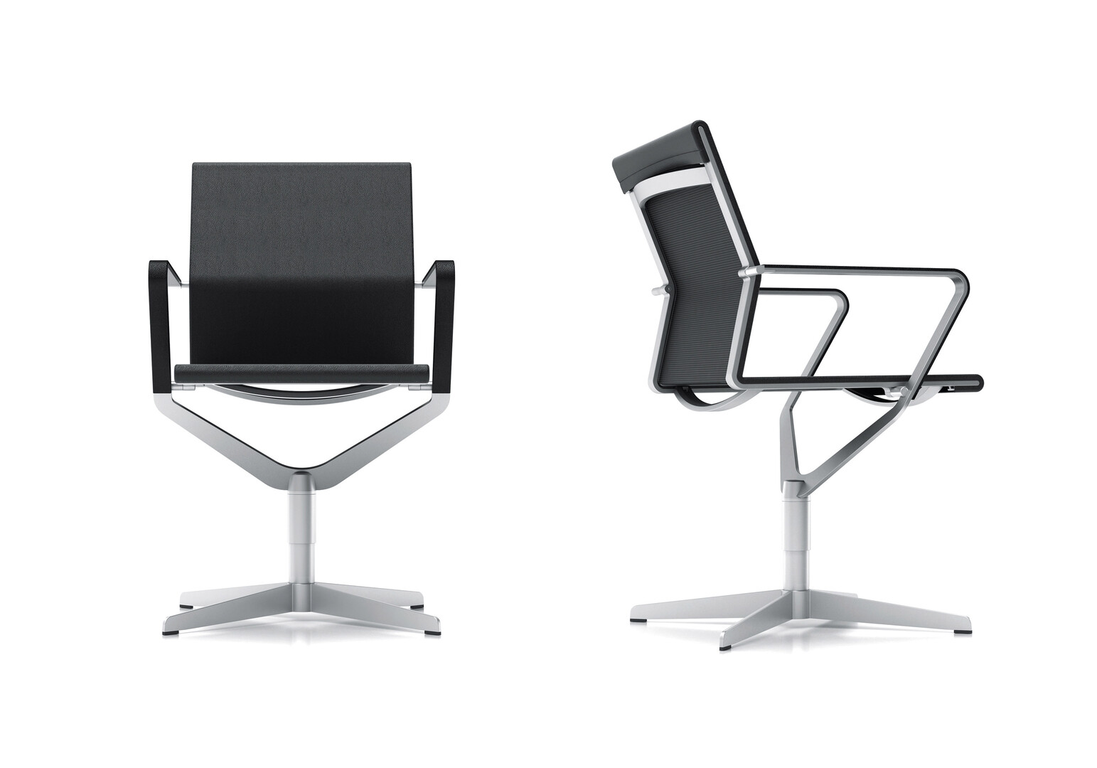 With its minimalist design and slim construction, the Diadem conference chair blends very well into different environments and is particularly well suited for highly frequented work places such as conference halls, meeting rooms or waiting lounges. The distinctive geometric form of the legs together with the steel armrests lend it elasticity and support a dynamic, flexible sitting experience. The curved backrest very naturally adapts to the user’s posture, ensuring high seating comfort.
