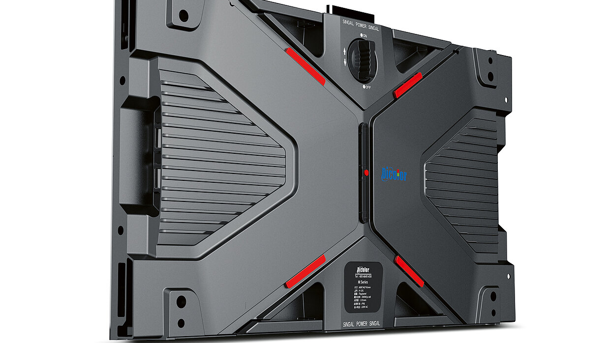 The LED displays of the HP Series are conceived for easy installation. Their distinctive design feature is the X-shape of the raised edges converging in the middle, inspired by the shape of a bat. This signature construction provides good orientation for installation. The handles blend neatly into the back panel without being in the way of the cable routing to the connectors. The die-cast aluminium housing offers stability and efficient heat dissipation.