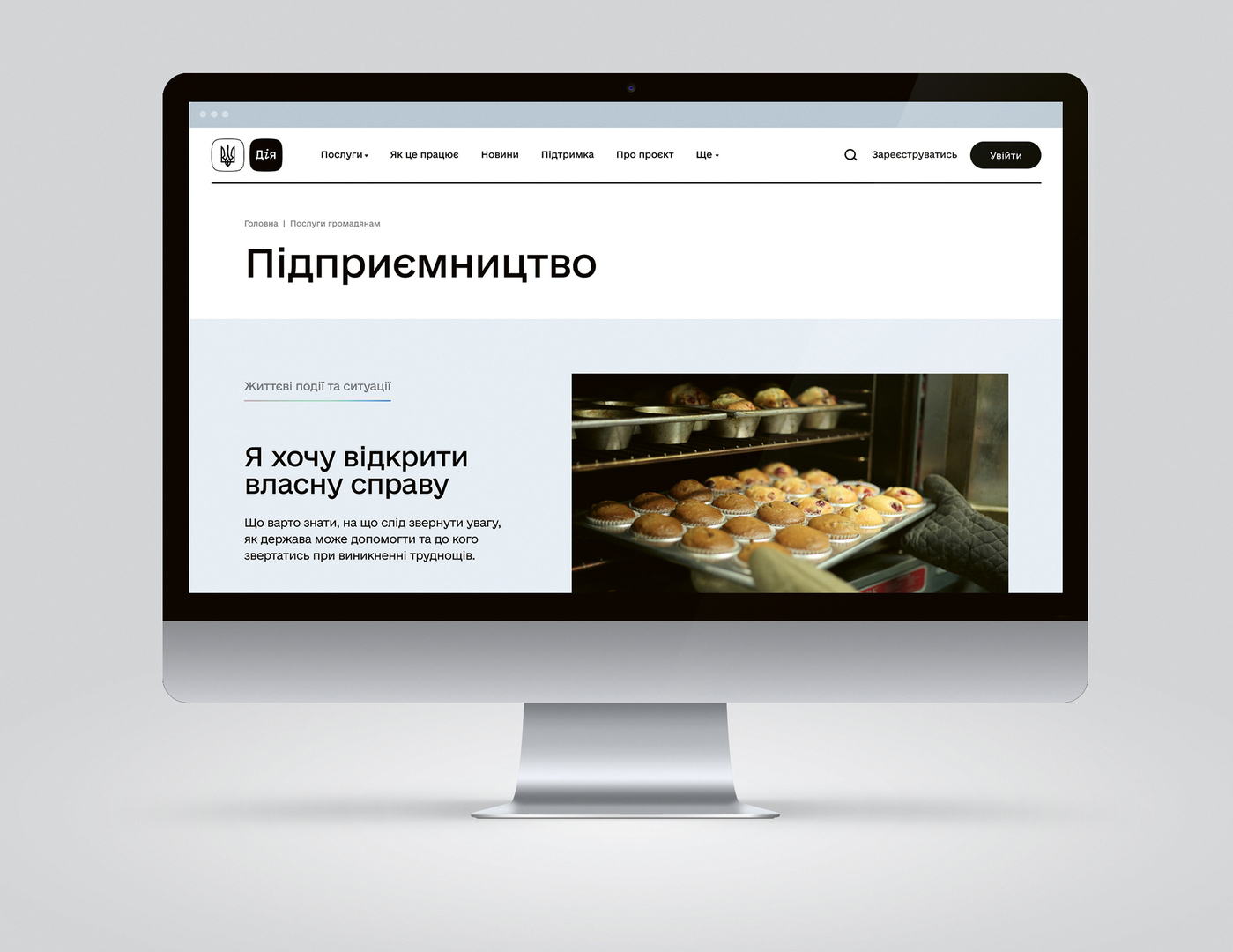 With the objective of transparency, the concept of the digital portal Diia involved the development of the UX / UI and the creation of a design system for Ukraine government websites. It contains all federal services and gives users the possibility to order them directly from an electronic device. The services have been considerably simplified. Thus, thanks to a redesign of the private entrepreneur registration, for example, the number of fields a citizen needs to fill in has been decreased from 58 to 7. Every step of ordering a service is accompanied by tips and assistance.