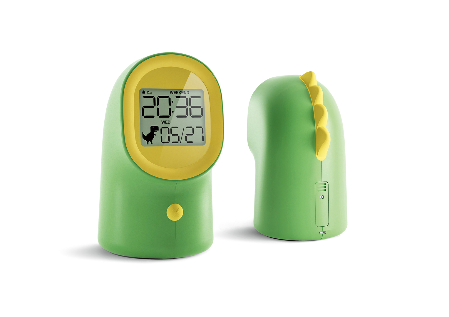 The form of this alarm clock is reminiscent of dinosaurs and wakes up children to the call of dinosaurs. It has cheerful colours and is designed in soft forms. Small lamps light up in addition to the waking sound, which makes the clock more interactive and especially interesting to the child. With its figurative design, it evokes friendliness and blends in well with the environment of children’s rooms.