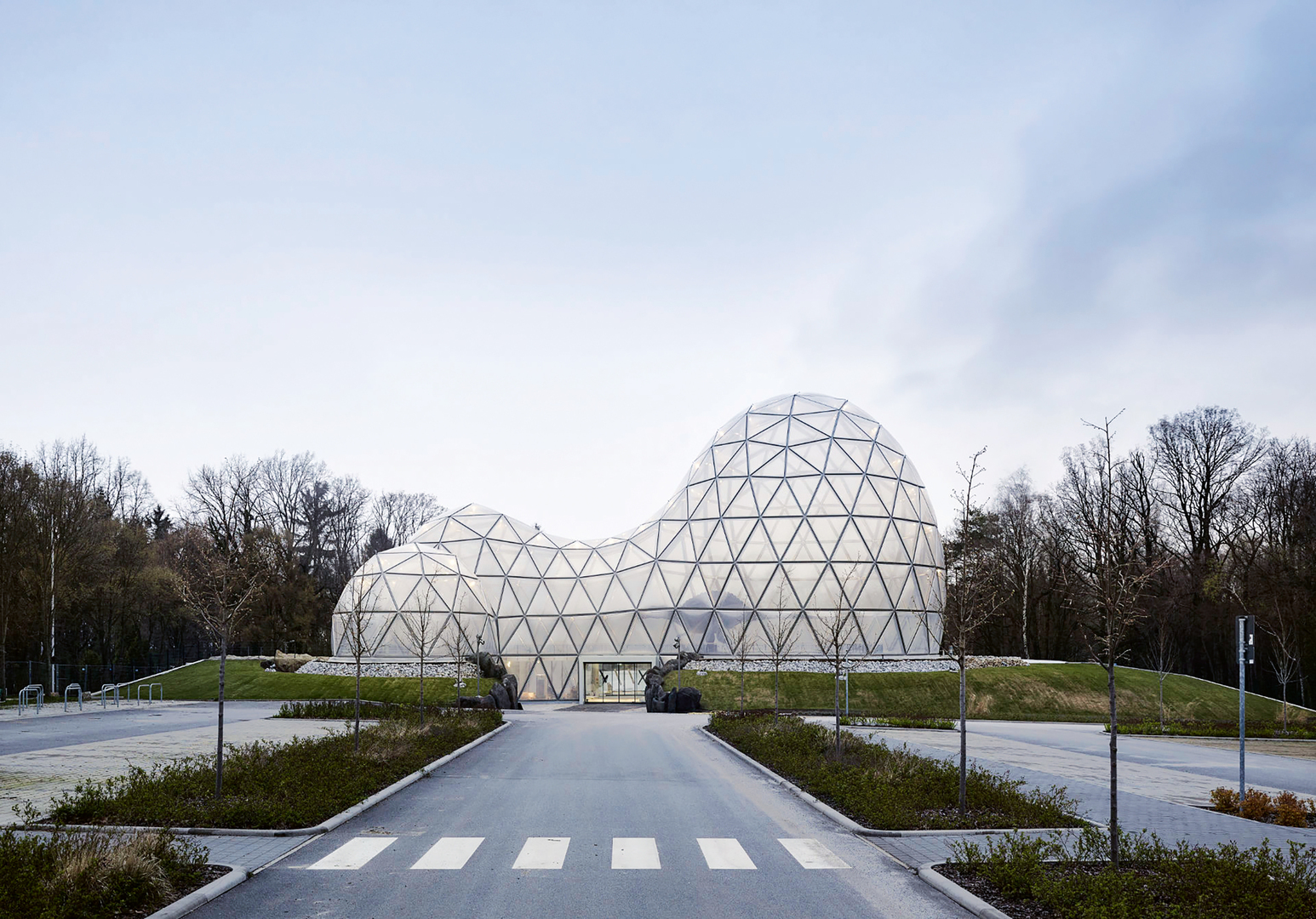 The primordial cell and its division as the origin of life have served as the allegorised inspiration for the entrance building of the Dinosaur Theme Park in Kleinwelka, Germany. Lending identity to the MITOSEUM, its architecture has been modelled on the six phases of mitosis, the biological concept of cell division and evolution. Due to the heights and volumes of the structures, these “cells” in their various stages are already visible from a long distance. The structure and colour of the translucent shells, made of ETFE foil, symbolise nature and life.