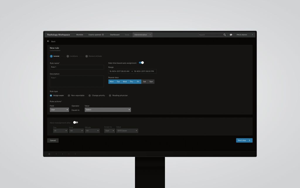 Distributed Radiology delivers a simplified workflow which reduces the number of steps required for radiologists to view and interpret incoming image studies. The web-based solution provides direct access to all images across the system, automatically directs the investigation results to the radiologist with the appropriate specialist expertise, and thus speeds up the delivery of results to ordering physicians and patients in large healthcare organisations. The customisable user interface shows relevant data at each stage in the workflow, while intuitive data visualisations ensure that information is easily and quickly understood.