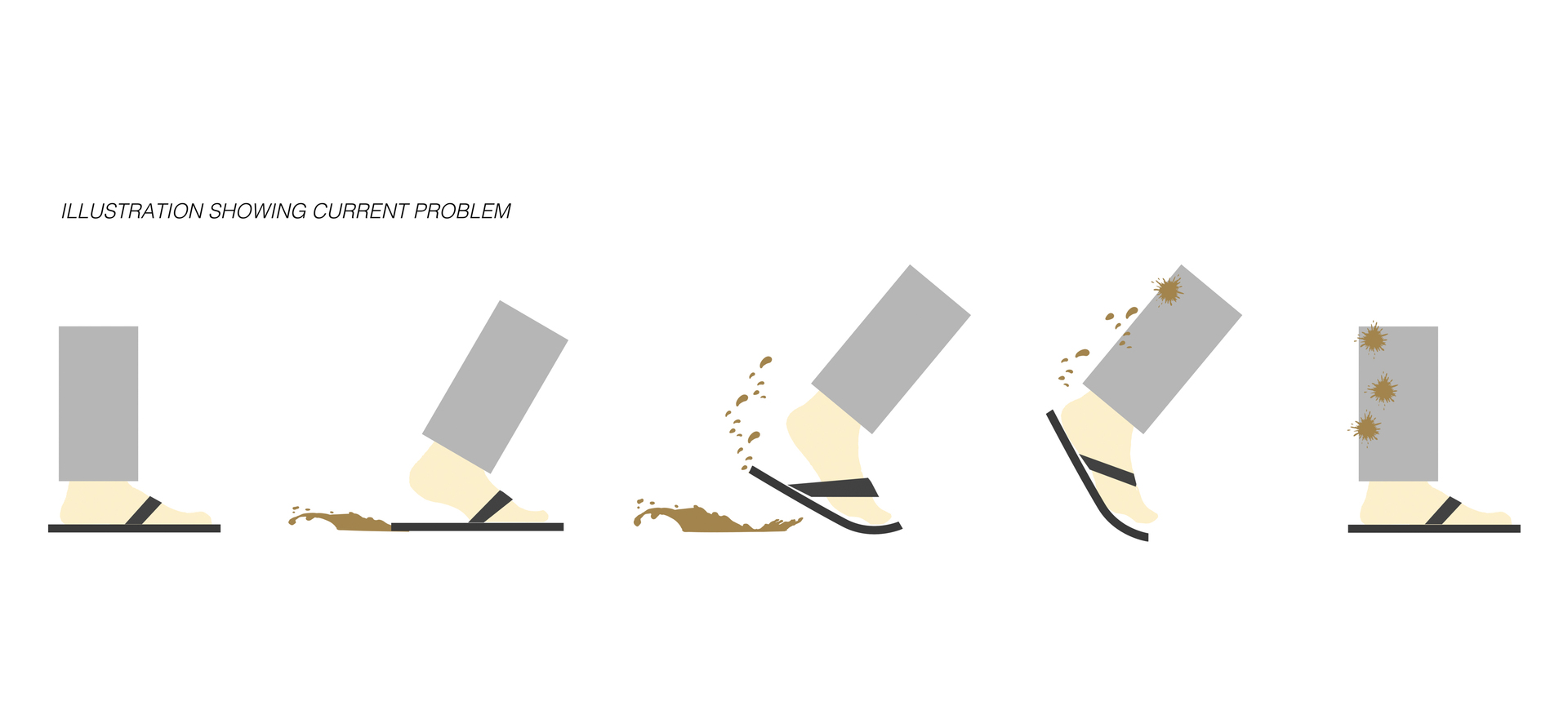 Walking after the rain is unpleasant due to backsplashing of mud and water, especially for those who prefer wearing flip flops. DIVERTER FLIP FLOP has a newly designed edge which will divert the trajectory of mud and water, and therefore keeping clothes clean. The new design concept needs only a minor modification in the moulding of the traditional flip flop, making it highly realisable.