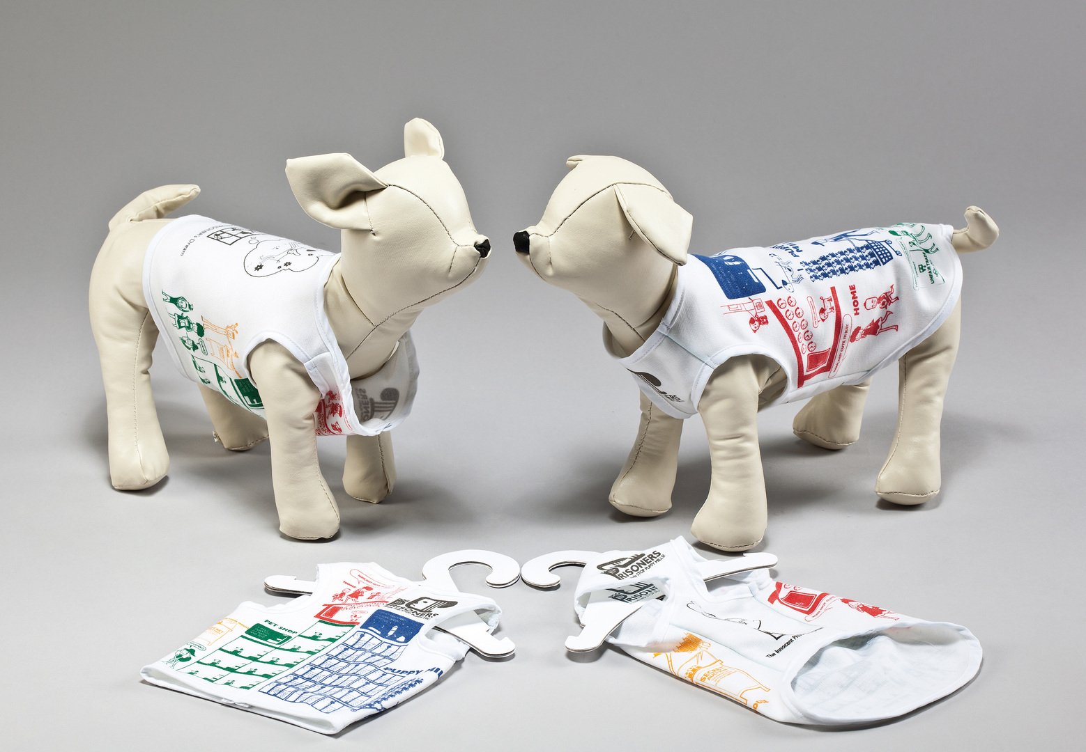 The campaign “Dog Prisoners” aimed at raising awareness of the conditions under which dogs are kept for display in pet shops. Female dogs in particular are often held there under poor conditions, forced to keep giving birth to puppies that can be sold at low prices yet maximum profit. Uniting many different products under one design line, the concept informs about the dark aspects of the pet industry through easy-to-understand diagrams and pictograms. The message is consistently translated into many communication media. Dog collars, dog coats, stamps and business cards all promote the message of a more respectful coexistence between humans and pets.