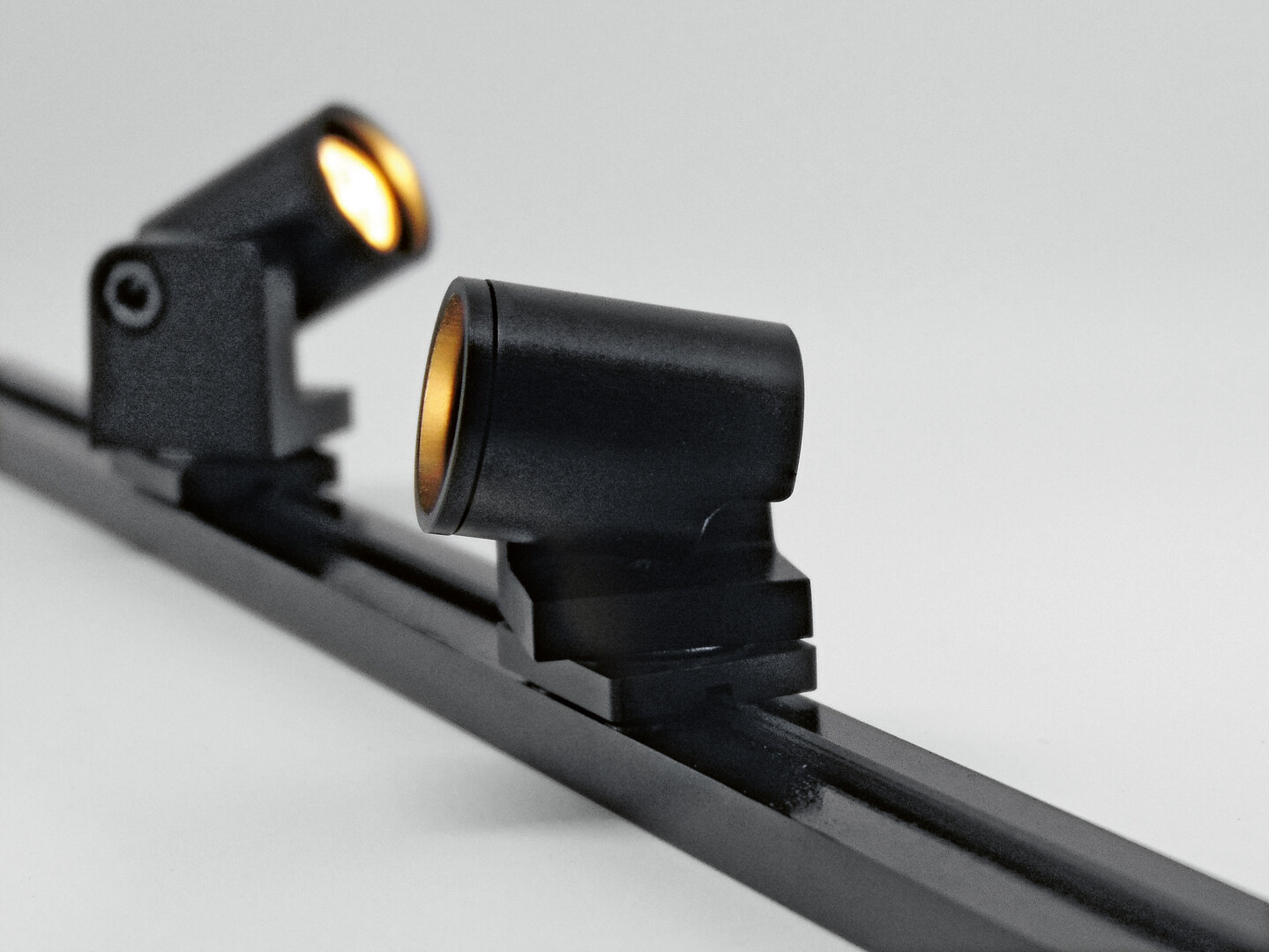 These miniature spotlights are particularly suitable for narrow lighting situations such as in showcases. With their compact size of 21 × 19 × 22 mm, they remain discreetly in the background. Intuitive- to-use mechanisms allow tool-free adjustments to meet individual requirements. Featuring a magnetic base, the LED spotlights can be placed freely on the power track, rotated by 360 degrees and swivelled by 180 degrees. The screw cap on the spotlight head facilitates the replacement of the lens.