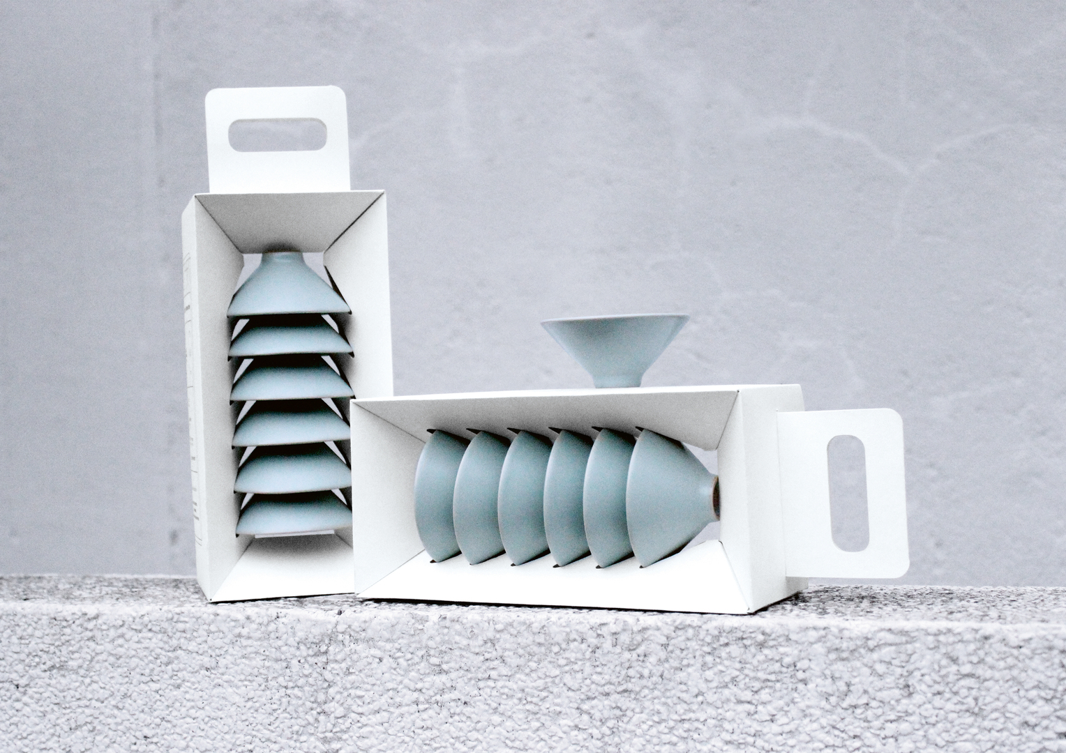 Inspired by the sculptural structure of ancient Chinese architecture, this foldable packaging houses six tea cups. The environmentally friendly packaging concept is reflected in the use of recyclable materials. Designed with clean lines, which are characteristic for the brand, the box is made from 300 grams ivory board which makes it sturdy yet pleasantly light for users to carry. Because of the construction with a central hollow space and twelve arrow-shaped openings on the left and the right for storing the cups, the packaging is resistant to pressure and protects the contents from breakage.