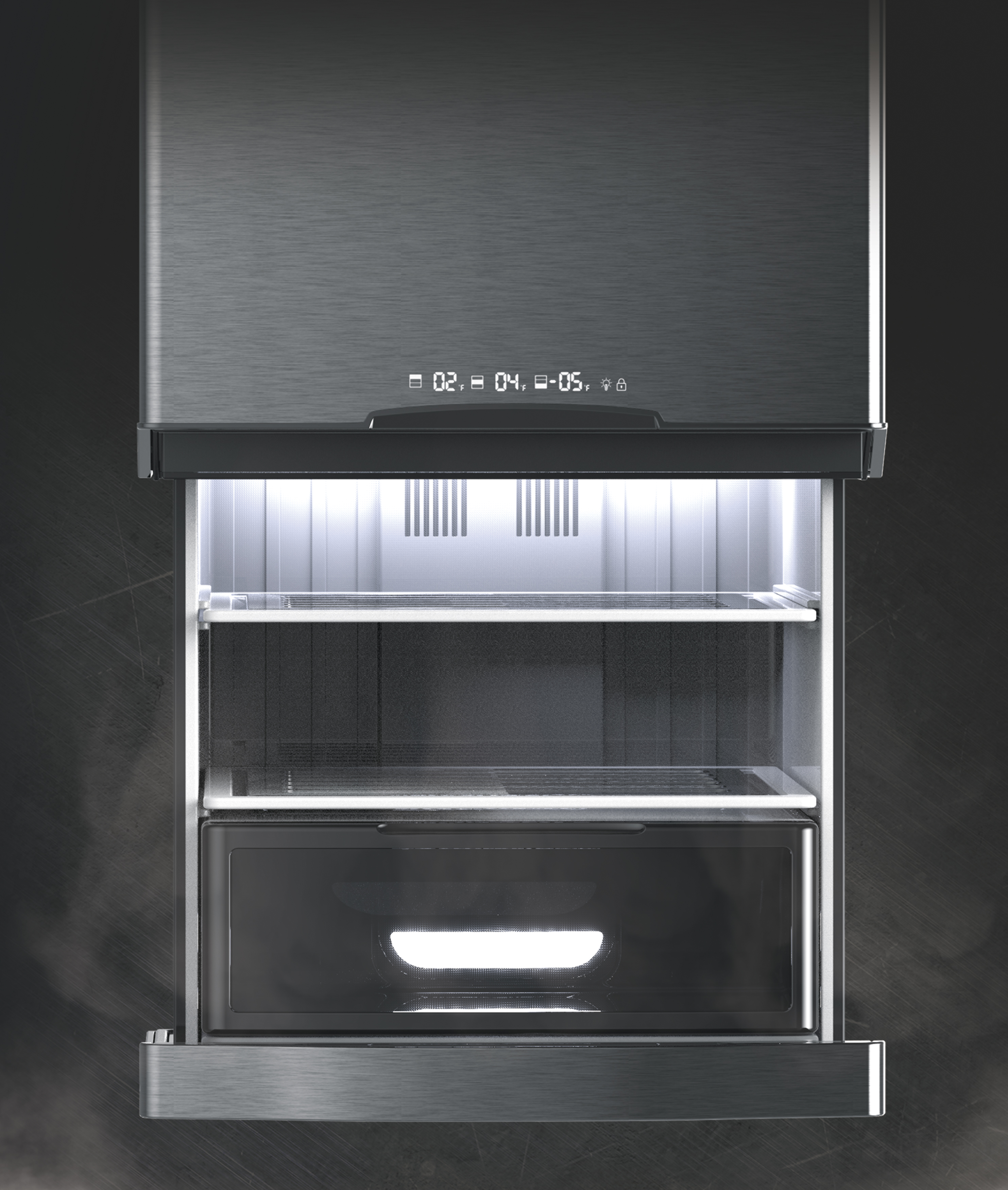 Designed for small dwellings, Down Fridge is a space-efficient refrigerator concept. This design uses technological advancement to enhance small space living by creating a built-in refrigerator that can be wall-mounted. Also, a normal Korean household usually owns two different refrigerators – the second reserved for fermenting kimchi. As an alternative solution, this fridge integrates the features of a kimchi refrigerator into a single appliance. Not only does Down Fridge free up floor space in the kitchen, but it also makes the food preparation process more efficient by cutting down the distance between the work station and refrigerator.