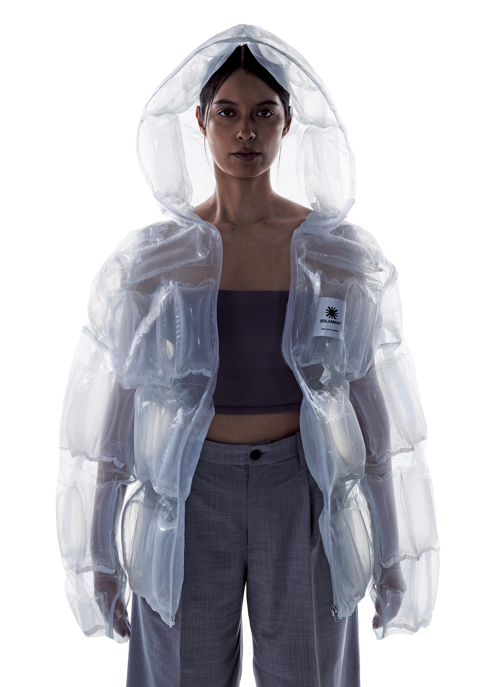 In the apparel industry, known for its pollution, it's crucial to adopt methods that reduce environmental impact by using sustainable materials and optimising logistics and recycling. Addressing this, Emerging Material Tech created the world’s first solar-smart jacket, the DOWN-LESS DOWN JACKET. The key is SOLAMENT™ material technology, which absorbs near-infrared rays from sunlight and instantly converts the rays into heat. This transparent down jacket, made without feathers, generates immediate heat when exposed to sunlight, producing warmth that matches or exceeds that of traditional down jackets. The jacket also incorporates common materials like agricultural nets and packing materials, eliminating the need for feathers and complex processes in apparel manufacturing. This innovative approach demonstrates the potential for producing highly functional clothing with fewer resources, prompting a rethink of necessary resources. Additionally, SOLAMENT™ can serve as a heat-shielding material that allows visible light while blocking heat, preventing temperature rise inside spaces. This characteristic can control room temperatures without fossil fuels, potentially impacting industries like construction and agriculture. The development continues with the hope that SOLAMENT™ will become a next-generation material technology suited for contemporary needs. Red Dot Award: Design Concept | Concept | Material and Surfaces