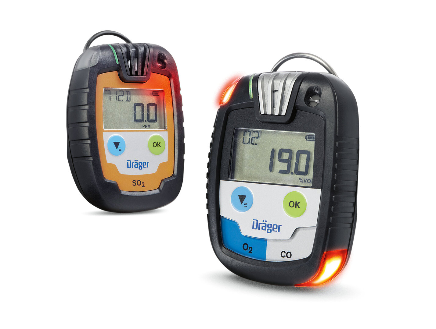 The single gas detectors are characterised by a colour-coding concept that can be grasped very quickly. The extremely distinctive look corresponds to their robustness.