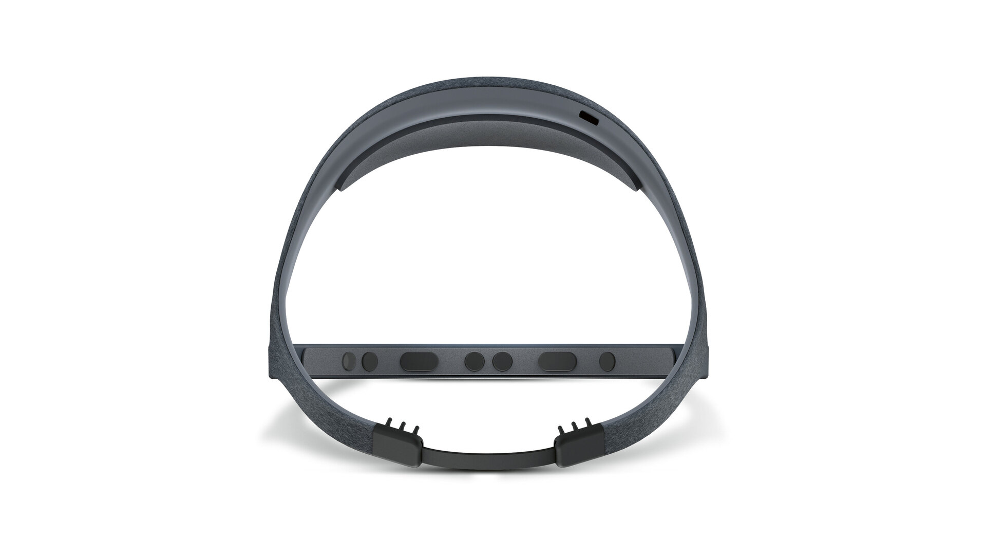 The Dreem headband monitors brain activity and movement, as well as heart and breathing frequency, during the night and emits audio signals to improve sleep quality. On the front are four EEG sensors, a pulse oximeter and two bone-conduction speakers, which direct the sound straight into the inner ear so that only the wearer hears the sounds and the sleep of their partner is not disturbed. The headband is made of foam and textile. The elastic band at the back of the head ensures an optimum fit.