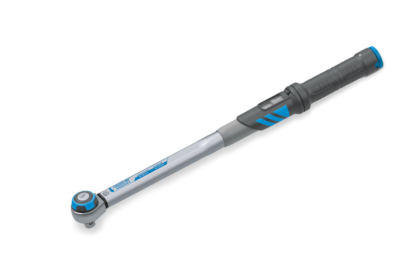This tubular torque wrench was developed for controlled tightening of screws in industry and artisan settings. An ergonomically shaped, two-component plastic grip with a clearly recognisable grip centre for safe handling makes the tool pleasantly tactile. Protected by a glass cover inside the housing is a convertible scale for the torque units. The desired unit is set by enabling a switch next to the scale and is protected against unintentional adjustments thanks to a locking mechanism at the end of the handle. A sturdy, matte-chrome-plated steel tube is the supporting component of the torque wrench.