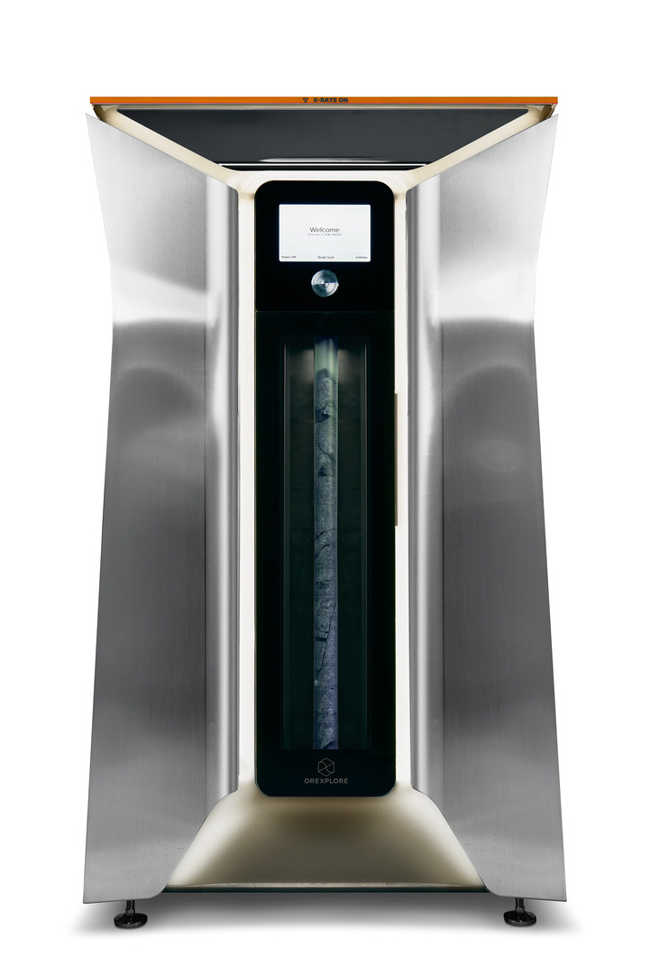 The monolithic shape of the Drill Core Analyser is contrasted by the tapering surfaces and precise lines in an espe-cially dramatic way.