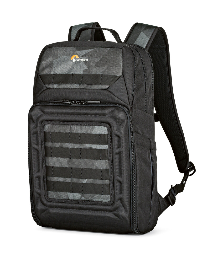 This robust backpack offers protection for a DJI Mavic Pro system, a 15” laptop, a 10” tablet and more camera equipment, for example five additional batteries. Thanks to compression moulded FormShell technology, the light and space-saving bag material protects the product from impacts. In a pocket at the shoulder strap there is room for even an oversize smartphone. High comfort when wearing and cooling is provided by the absorbent rear panel and adjustable belts. Side pockets enable easy access to a water bottle and other small items.
