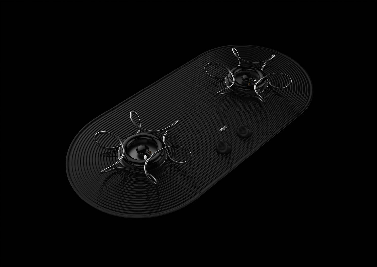 Dry Mountain Gas Stove is designed to have a softer and more intimate user experience through functional beauty. This is achieved by implementing thoughtful design features through the entire gas stove, from the bottom plate to the burner and even the knobs.