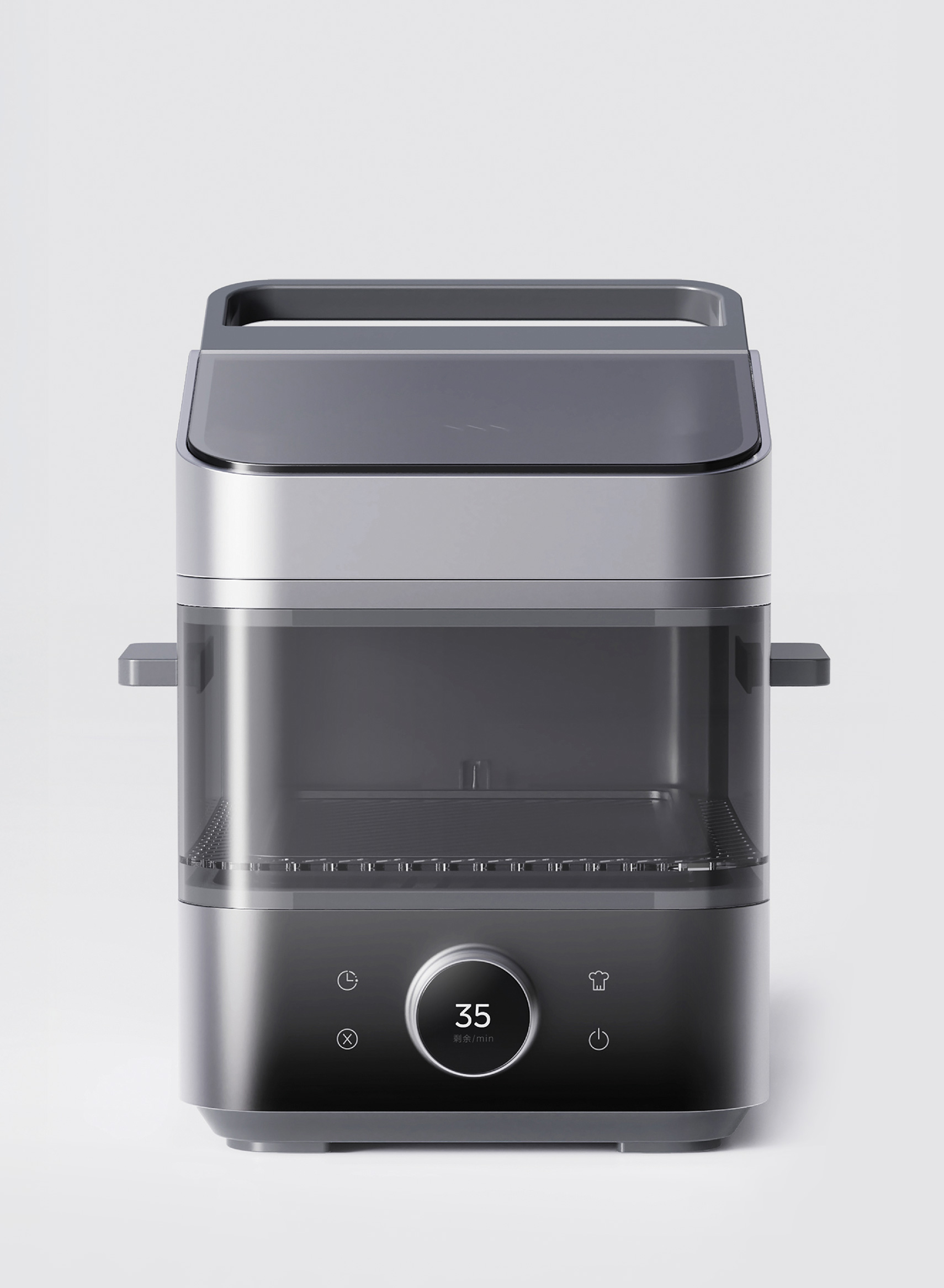 This steamer features a backward-tilted top handle that encourages users to open the lid from back to front, preventing condensation from dripping onto the food. Perforations around the steam pan's perimeter and a specially designed ring-shaped steam outlet at the base create a unique steam pathway that minimises condensation. An integrated algorithm and temperature probe also ensure precise cooking completion. Red Dot Award: Design Concept | Concept | Kitchen Appliances and Accessories