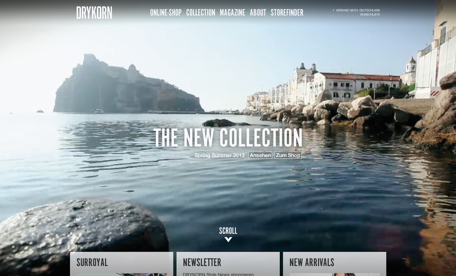 This corporate website was realised as part of a relaunch, implementing a comprehensive concept that is reflected by the unity of e-commerce, magazine, product and brand presentation. The screen was meant to serve as a canvas and provide space for showing impressive cinematic image worlds and video content. All content pages and products on this website can be shared on social networks and are structured to be located easily via a store finder that leads to 900 “entrances” of the DRYKORN brand environment worldwide.