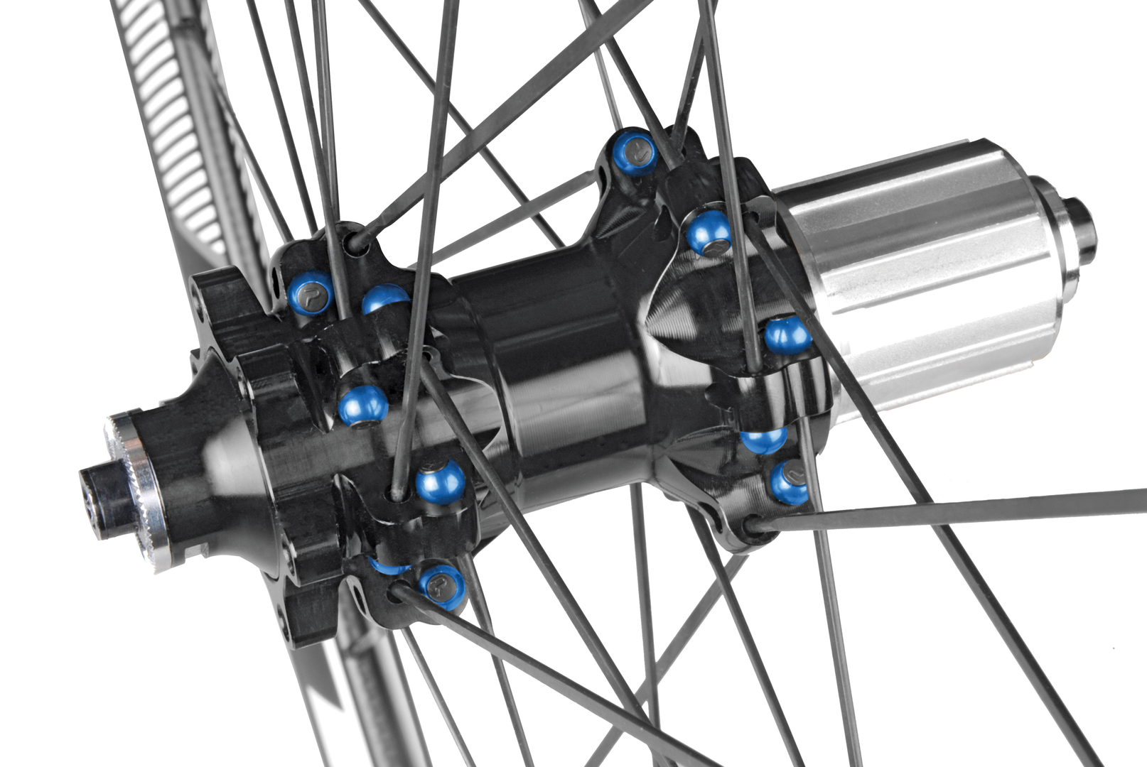 The particular construction of this MTB wheel set allows improved feedback, stiffness and power transmission. The DSA2s hub can be used on different rim sizes from 26 to 29” thanks to an innovative feature called Degrees of Freedom for Versatility. Its advantage is a bigger surface contact area on the spoke end for a well-balanced load distribution. The spherical design guarantees a 360° spoke orientation permitting high tension between the spokes.