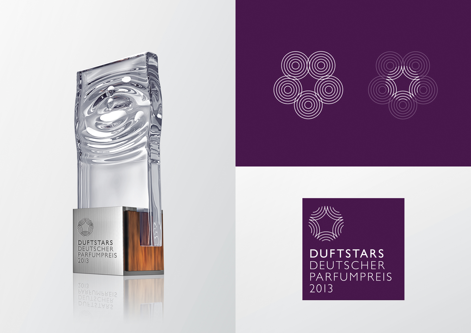 For over 20 years, a high-profile jury has been awarding the title of “Duftstars” to the year’s best fragrances for women and men. In 2013, it does so with a new image, a visually compelling combination of all the existing brand elements – logo, brand colour scheme, trophy and brand name. The result is a bold, elegant brand image which gives the award the official character that befits this German institution. The graphic element of the word and design mark shows the star-shaped centre which is formed by five combinations of concentric circles that intersect. The brand design also manages to successfully create an exclusive look and feel for a sophisticated industry, thus lending the “Duftstars” event an appropriate atmosphere.