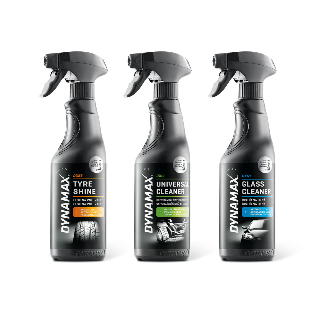 These new bottles for Dynamax Car Care products emerged as an extension of the packaging design of the existing product range. The cylindrical bottle contour is characterised by an anti-slip ribbing, a convenient disperser head as well as drip-free use. The label design features a clear colour coding to distinguish between the individual care products for glass cleaning, external and interior cleaning and tyre care. Printed on a silver label, the application photos achieve an appealing dynamism.
