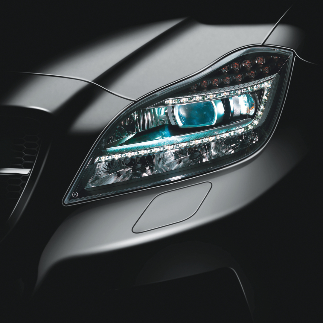 The dynamic all-LED headlamp features a wide range of adaptive light functions, which are generated by a total of 71 light-emitting diodes. This intelligent system recognises driving and weather conditions and automatically chooses the optimal light distribution from seven different options. With a colour temperature of around 5,400 kelvin, the long-lasting LEDs produce a light colour similar to daylight. The LED side light and the “eye” curve light, with its purist appeal, lend the headlamp its distinctive appearance.