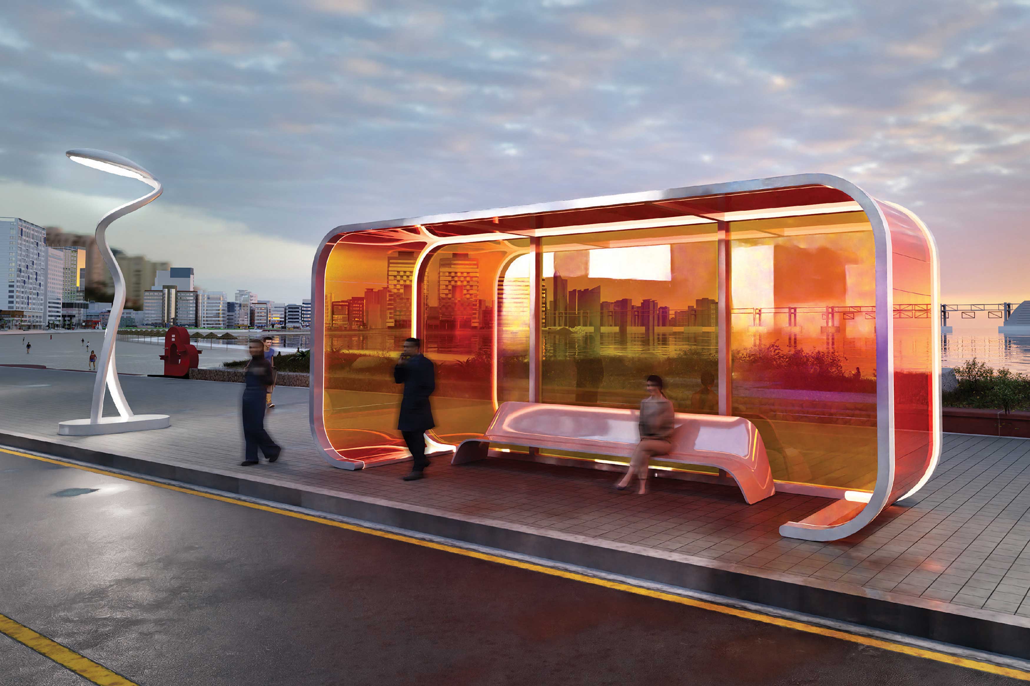 Inspired by Busan's maritime spirit, this public space concept uses organic forms, vibrant colours, and dynamic lighting to reflect Busan's energy and nightscape. A 'clear space' strategy preserves sculptural integrity while unifying diverse elements — bus stops, benches, bollards, and more. This cohesive design language enhances both function and aesthetics, offering residents and visitors a distinctive and engaging urban experience. Red Dot Award: Design Concept | Concept | Public Space and Urban Design