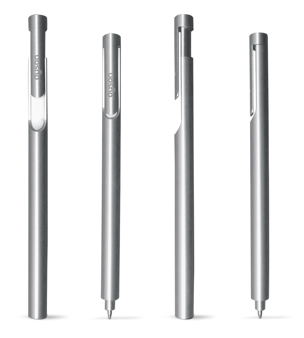 When designing the Dyson Pen, the aim was to create a stylish and comfortable pen with an unadorned and practical design. Its mechanism is a simple push-down-and-up locking function, which is a straightforward solution that stands out due to its efficient usability. The pen was inspired by the unpretentious geometry of the Dyson Airblade tap and employs the pure, highly polished metal of the pen in the same way.