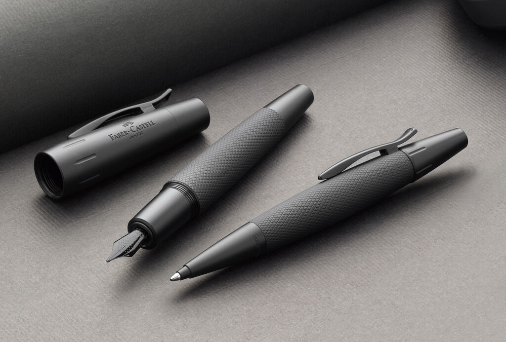 The distinct shape, the finely patterned aluminium barrel and the rich black hue are the characteristic design features distinguishing this fountain pen.
