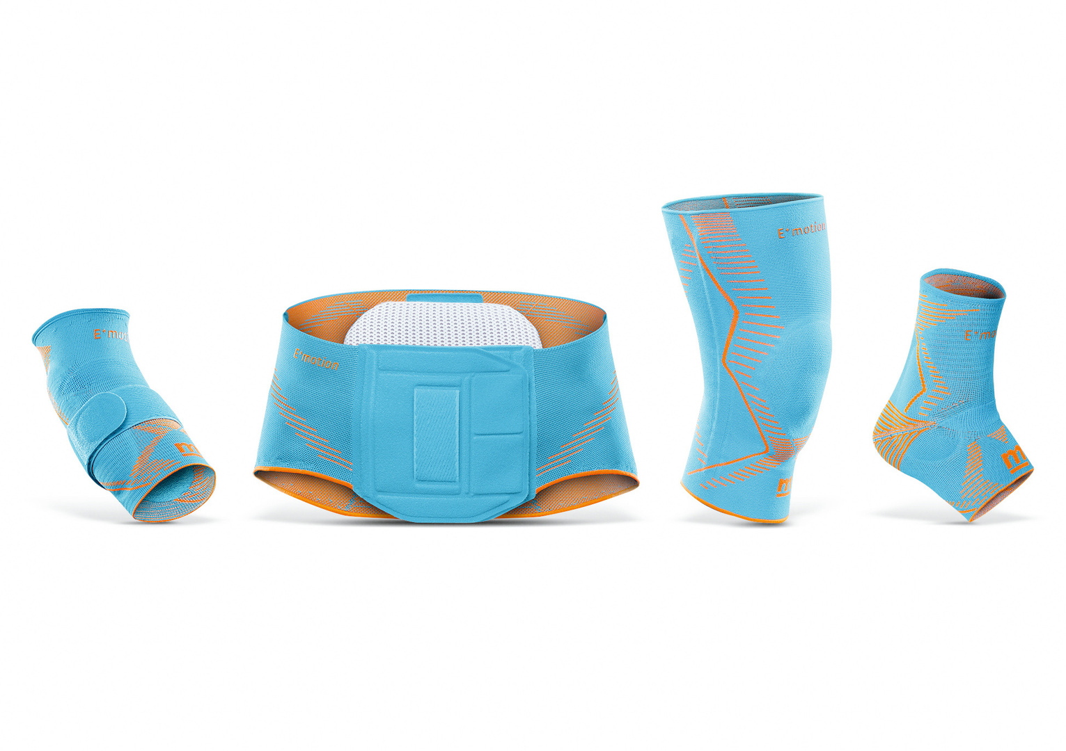 The supports of the E+motion series stabilise and reduce stress on damaged joints. The elastic knitted fabric provides an optimal fit, while the silicone-quartz pads with 3D profile create a comfortable massaging effect when moving and thereby enhance the blood flow. Swelling and oedemata are thus reduced more quickly, which supports the healing process. The functional high-tech fibres, which have been partially combined with natural merino wool, are characterised by pleasant wearing comfort in varying temperatures.