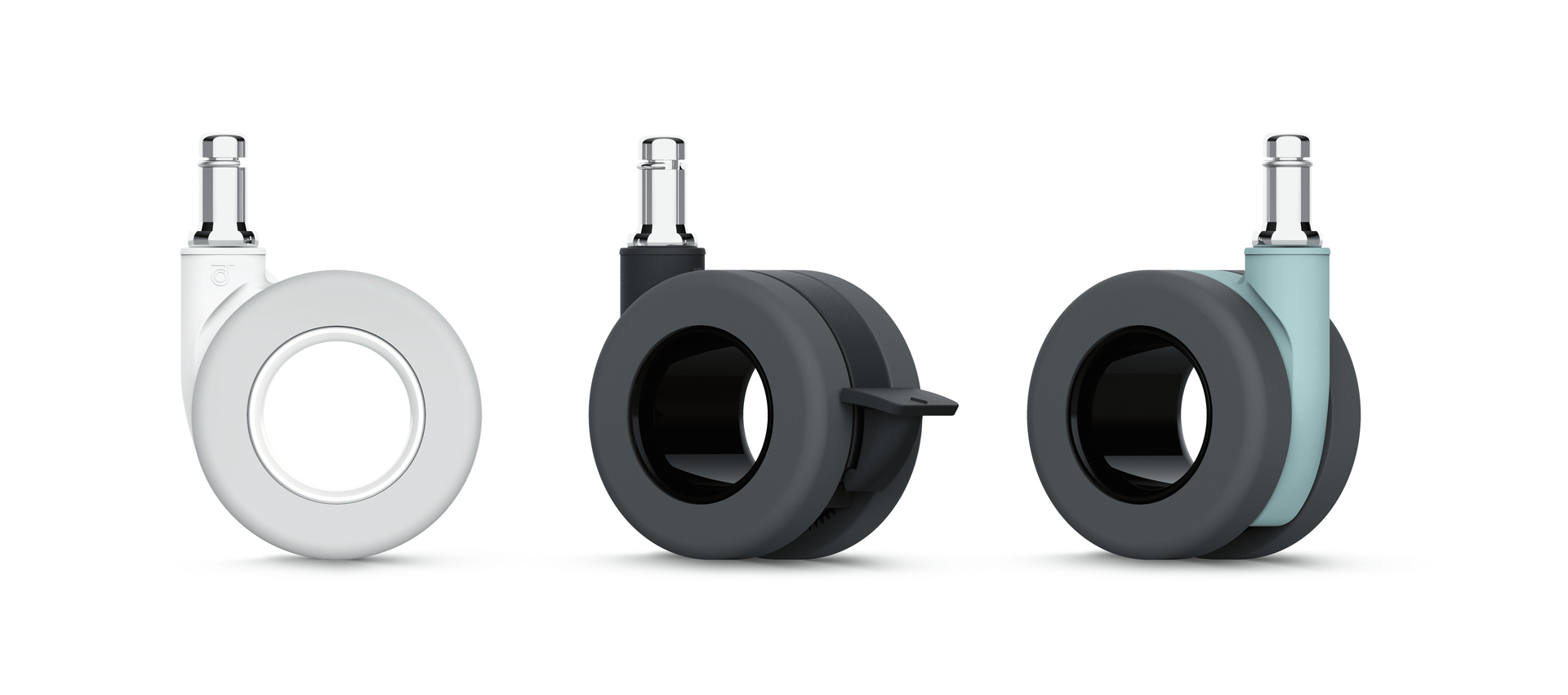 The office-chair castors of the E65U series are impressive with their elegant look and technically sophisticated construction.