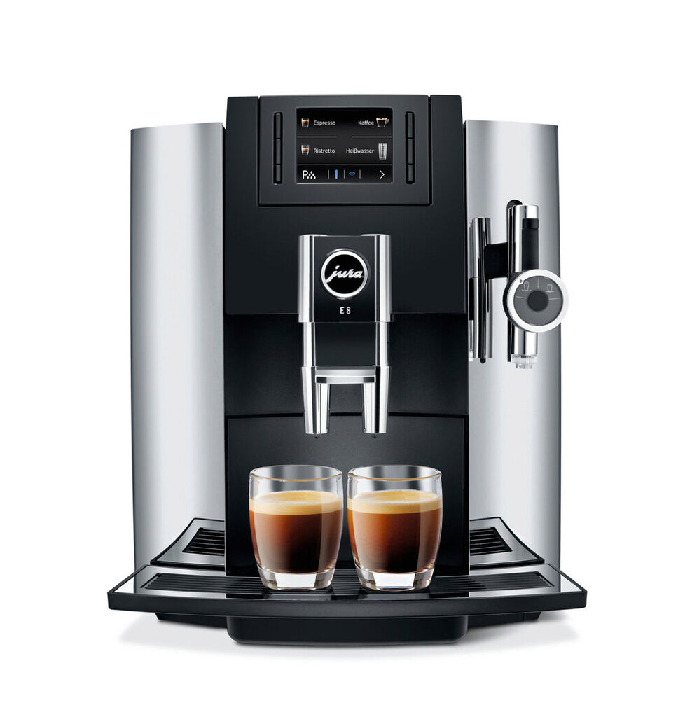 E8 is a fully automatic coffee maker with elegant chrome details which can be easily operated from the front. Not only can the water tank be removed from the front, but the coffee bean container can also be filled from the front. Operation and cleaning of the fully automatic device are carried out at the push of a button; a TFT display guides the user step by step. The one-touch function allows easy preparation of many coffee specialities. The Pulse Extraction Process (P.E.P.) assures optimal release of the aroma.