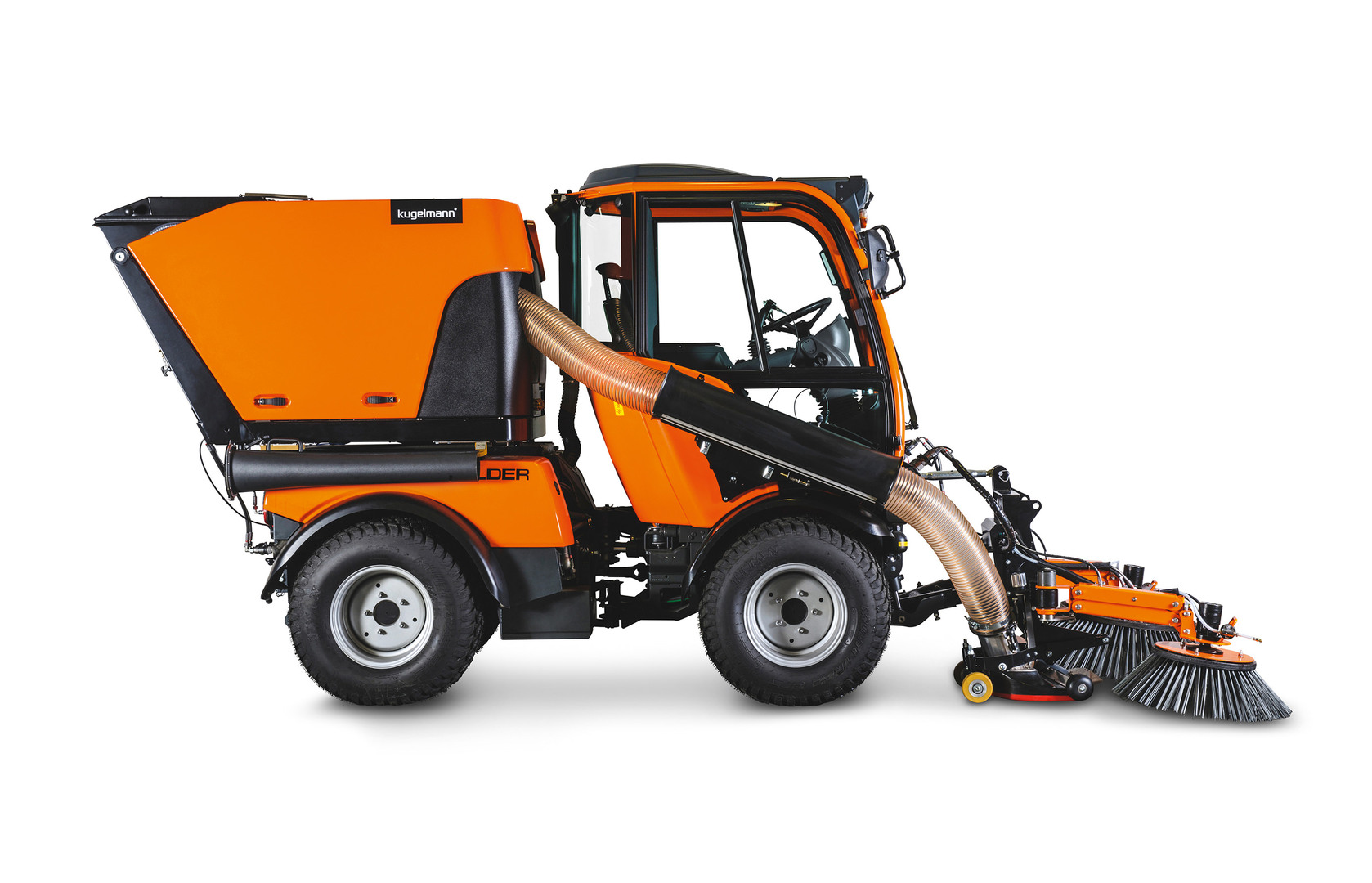 The E 800 | E 1200 is an adaptive brush and suction combination which makes an advantage of the supposed disadvantages of a not fully integrated but laterally running suction hose: the hose is easily accessible and thereby makes it possible for use also as a powerful, hand-held suction tool. The front consists of a broom and an aerodynamically optimised suction mouth, asymmetrically mounted and directed to the right. The intuitive steering is integrated into the existing vehicle joystick.