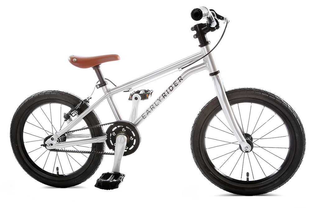 The Belter is an efficient children’s bicycle which is particularly light at only 5.7 kg thanks to its aluminium rims and tubing, bespoke nylon sprockets and a Gates Carbon drive belt. It is designed for children starting at age 3.5 years who have already learned to maintain balance, and it can be ridden with a minimum of effort. Top-quality cartridge bearings, 1.5” tyres of high thread count, and narrow Q-factor cranks ensure that rolling resistance is at a minimum.