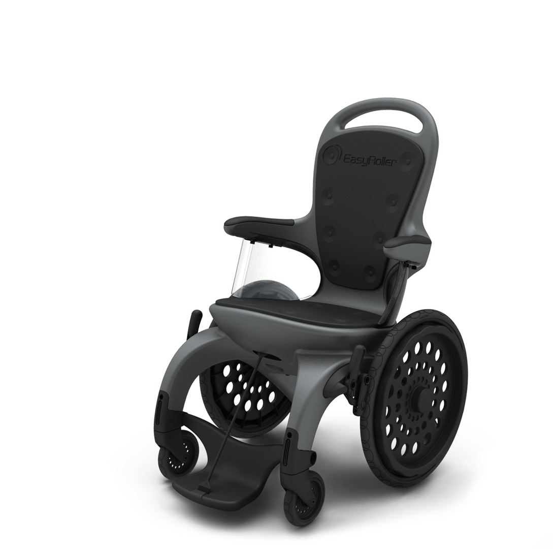 The Easyroller 2 is a distinctive transportation wheelchair with innovative use of materials. Made of 100 per cent thermoplastic, the main frame is a single plastic part (PE) ensuring stability and ergonomics while also functioning as assembly point for all other parts. Functional elements – such as the steering handle, armrest and tip stop – are intelligently integrated into the design, lending the wheelchair an overall welcoming appearance. The Easyroller 2 is certified according to the European standards for manual wheelchairs.