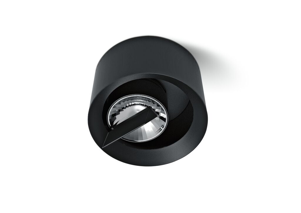 Inspired by a solar eclipse, the light source of this downlight is discreetly hidden and thus creates a glare-free, indirect illumination. The LED is located in the static blade of the body, and is collimated by the upper