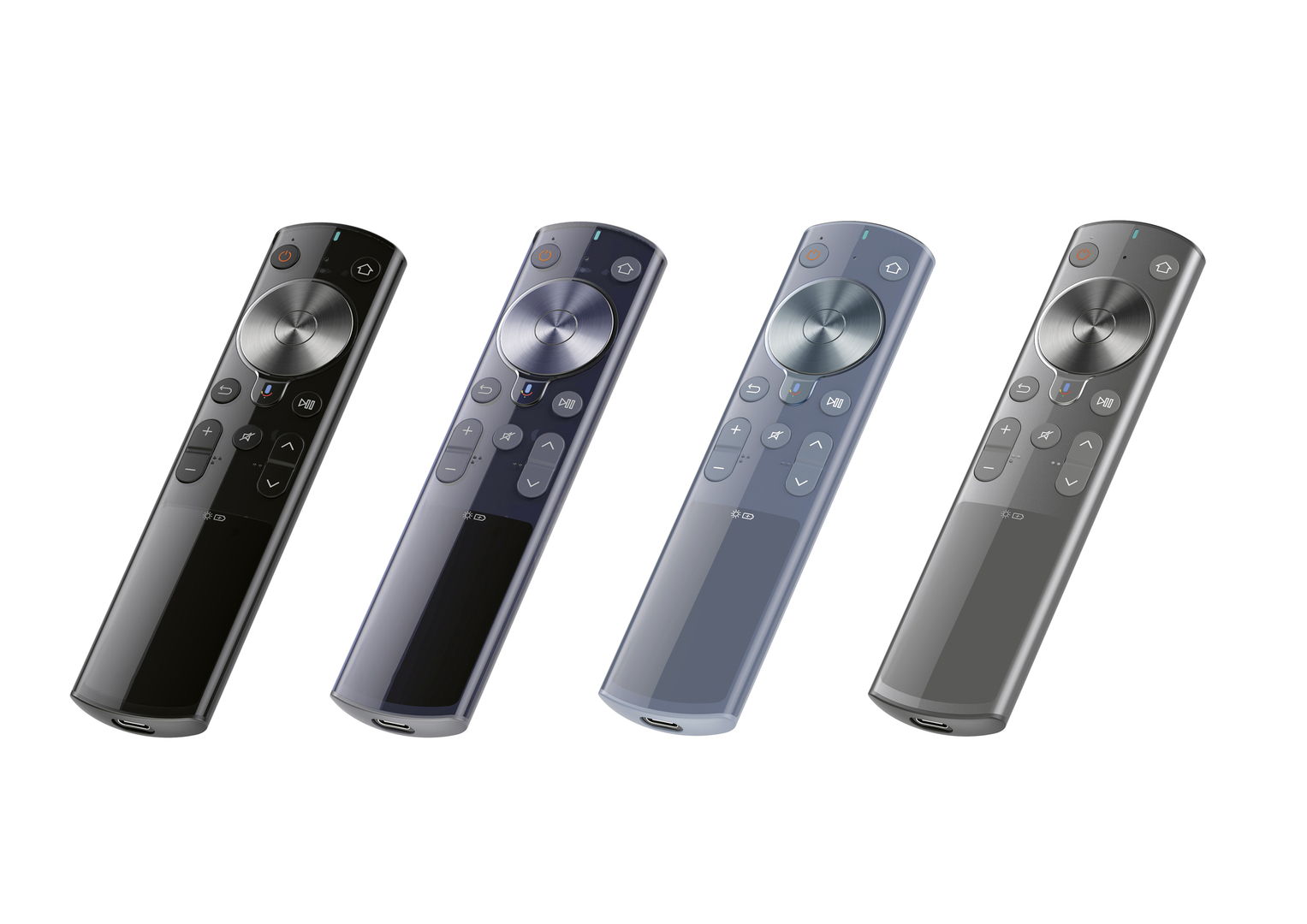 In the EcoGrab Series of remote controls, particularly powerful solar modules are installed. In addition, they can be charged wirelessly via RF technology or a USB-C cable, ensuring they are reliably ready for use anywhere. To further increase the environmental compatibility of the devices, recycled plastic resin (R-ABS and ABS/PET) is used in the manufacturing process. Unifying elements of the product range are the clearly arranged button layout, the slim silhouette and the rounded edges on the narrow sides.