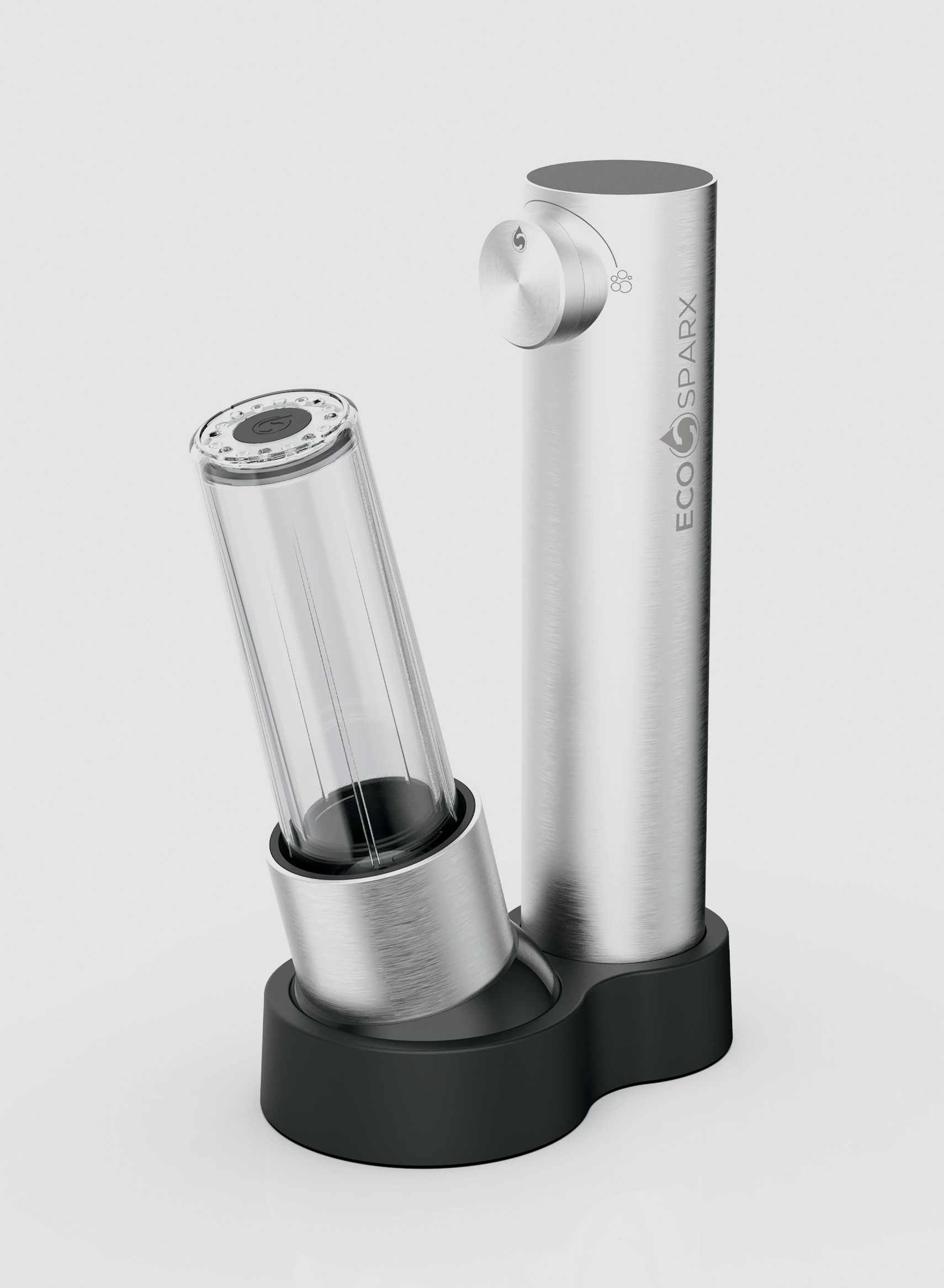 EcoSparx is a highly efficient carboniser with an upside-down design for operational simplicity. The bottle slides in easily by gravity, eliminating the need for screwing in or button-pressing. A self-locating locked position always ensures a perfect, secure seal. EcoSparx offers a sustainable and efficient water carbonation solution using environmentally- and human-safe materials that can be continuously cycled in closed loops. Red Dot Award: Design Concept | Ready For Market | Kitchen Appliances and Accessories
