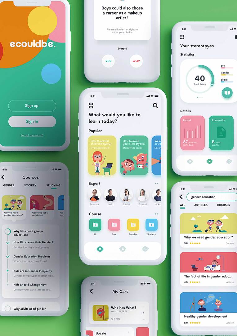 Ecouldbe is a pop-up book and App that aims to help children develop healthy gender perceptions and eliminate gender biases through gender education. Children and their parents learn about gender stereotypes by reading through every page of the book, which follows the journey of two protagonists who are of different physiological genders and the things they do that defy gender stereotypes. While the book encourages children to consider their own gender biases, parents are also educated on gender concepts in the process. By pressing the Bluetooth sensor, parents and children can test their gender perceptions and receive direct interactive feedback from the App. In terms of branding design, the chameleon in the logo represents a more colourful life, and the project’s name starts with the letter ‘e’, which is shared by both ‘she’ and ‘he’, implying a more gender-neutral world. Red Dot Award: Design Concept | Concept | Interaction and User Experience
