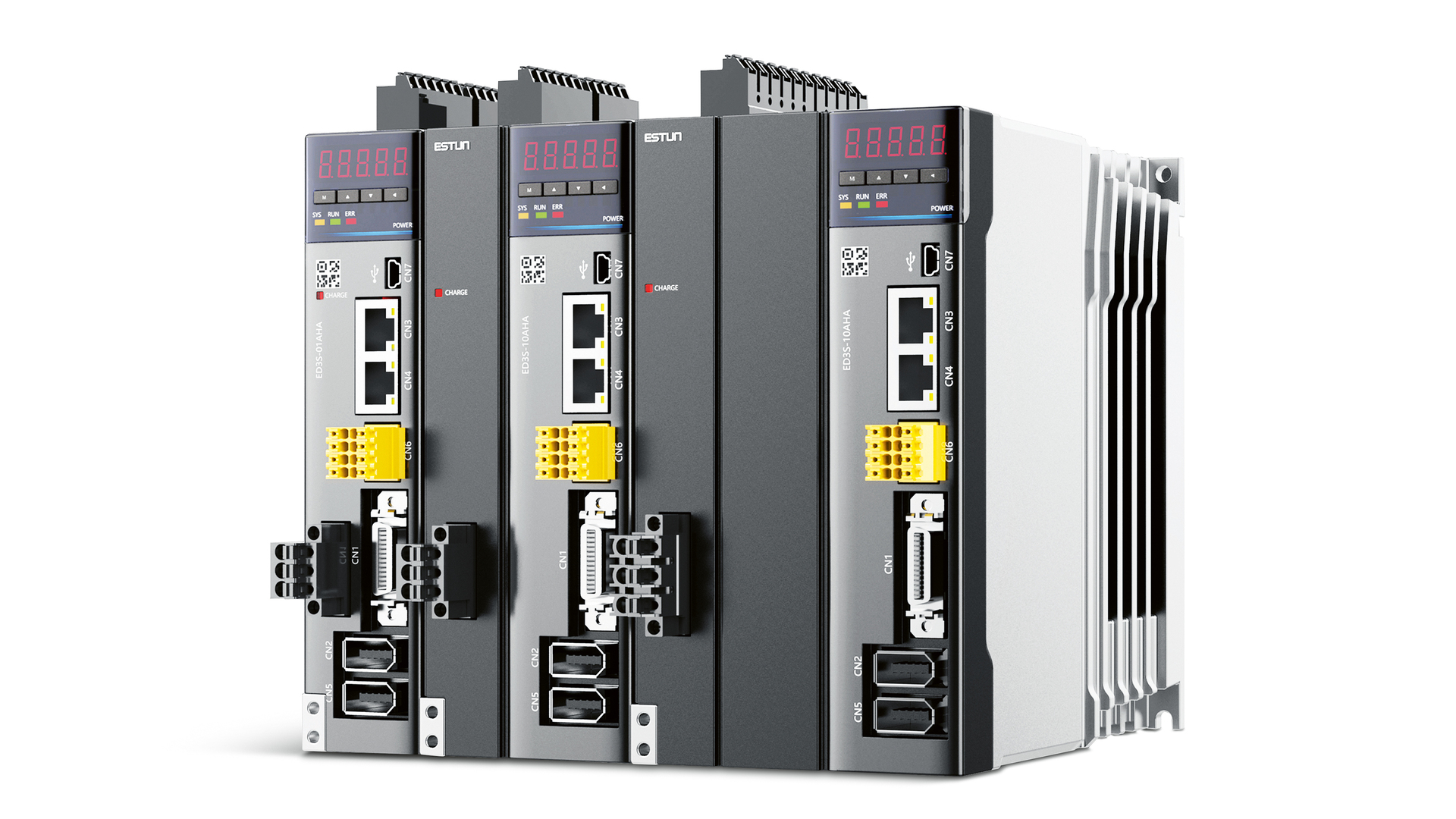 The ED3S servo drive with real-time Ethernet technology supports single and multiple applications in big and complex mechanical plants, for example in electronic manufacturing or in the printing and packaging industry. It unites high output density with a vertically aligned housing, which makes a particularly space-saving installation possible. In addition, the innovative design of the current loop suppresses vibrations effectively.