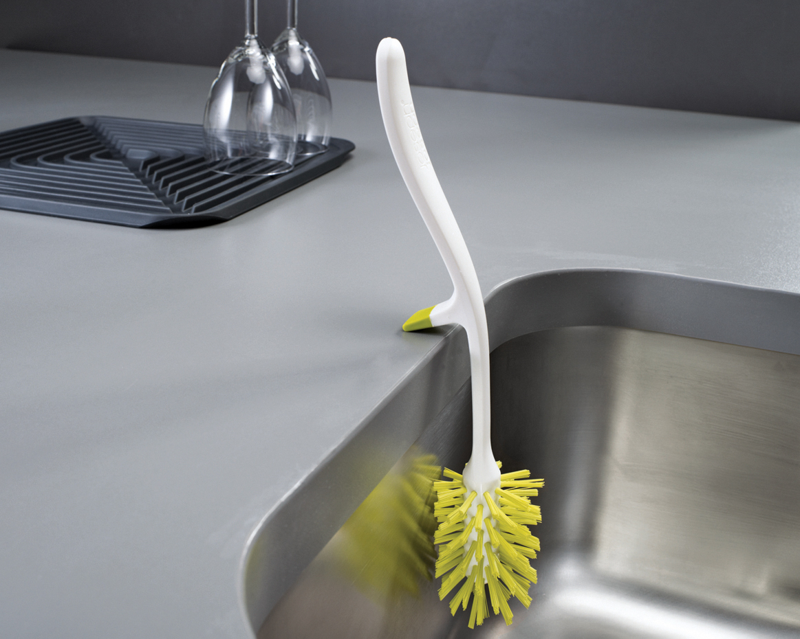 The distinctive glass brush Edge, thanks to its non-slip holder, can be simply hung into the sink. This not only saves space – water and soap suds can drip directly into the sink. For efficient cleaning, the brush head has bristles of various stiffness. It is designed to be eminently suitable for cleaning glasses, carafes, baby bottles etc.