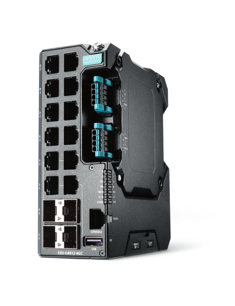 The EDS-G4000 series was designed for IoT applications which require a high degree of network reliability and security. It offers a wide range of configurations, a high connection speed and strong Power over Ethernet. Compact, suitable for DIN rails and wall mounting, and equipped with a flexible power module, the switches are certified for critical automation applications and help to minimise installation effort and power downtime. The new network operating system is easy to configure and monitor.