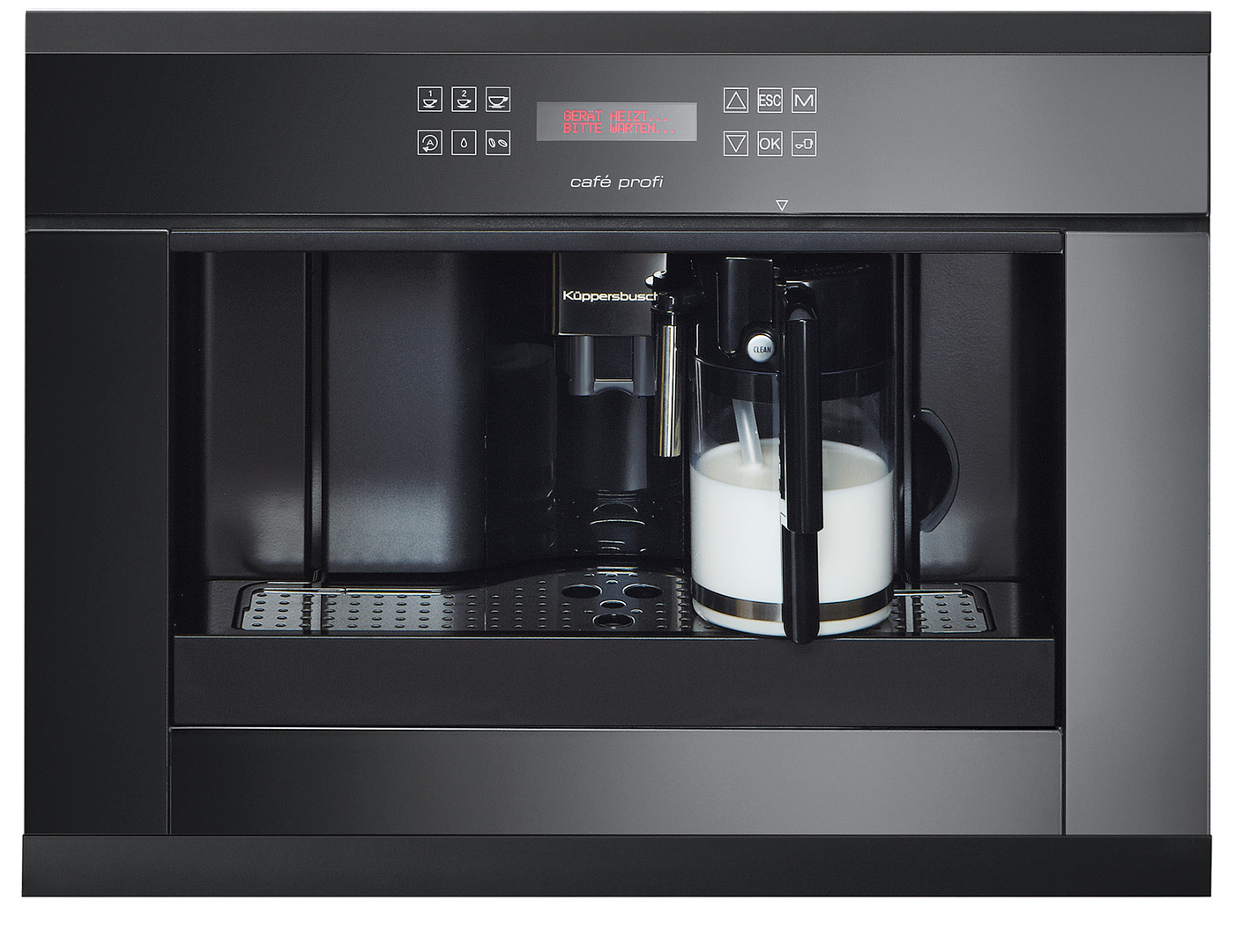 This automatic built-in coffee maker is distinguished by the option to programme the water amount for three different cup sizes as well as a special milk heating feature to prepare cappuccino, latte macchiato and white coffee. In addition, the milk container is removable and provides for comfortable operation. Thanks to its innovative sensor touch electronics, the device is self-explanatory and easy to operate. Plain text display guides the user through all the functions of the device.