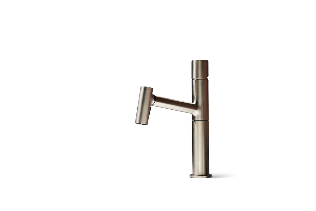 The Elate faucet features a consistently cylindrical design and is available in a range of colours. Its outlet can be swivelled to the left and right, allowing for a more flexible use of the washbasin, for example when washing hair. An integrated ball joint allows the pull-out spout to be rotated through 360 degrees, while the two spray options, including a powerful direct spray for rinsing the mouth and a fine, pearly spray for gentle skin cleansing, provide added convenience.