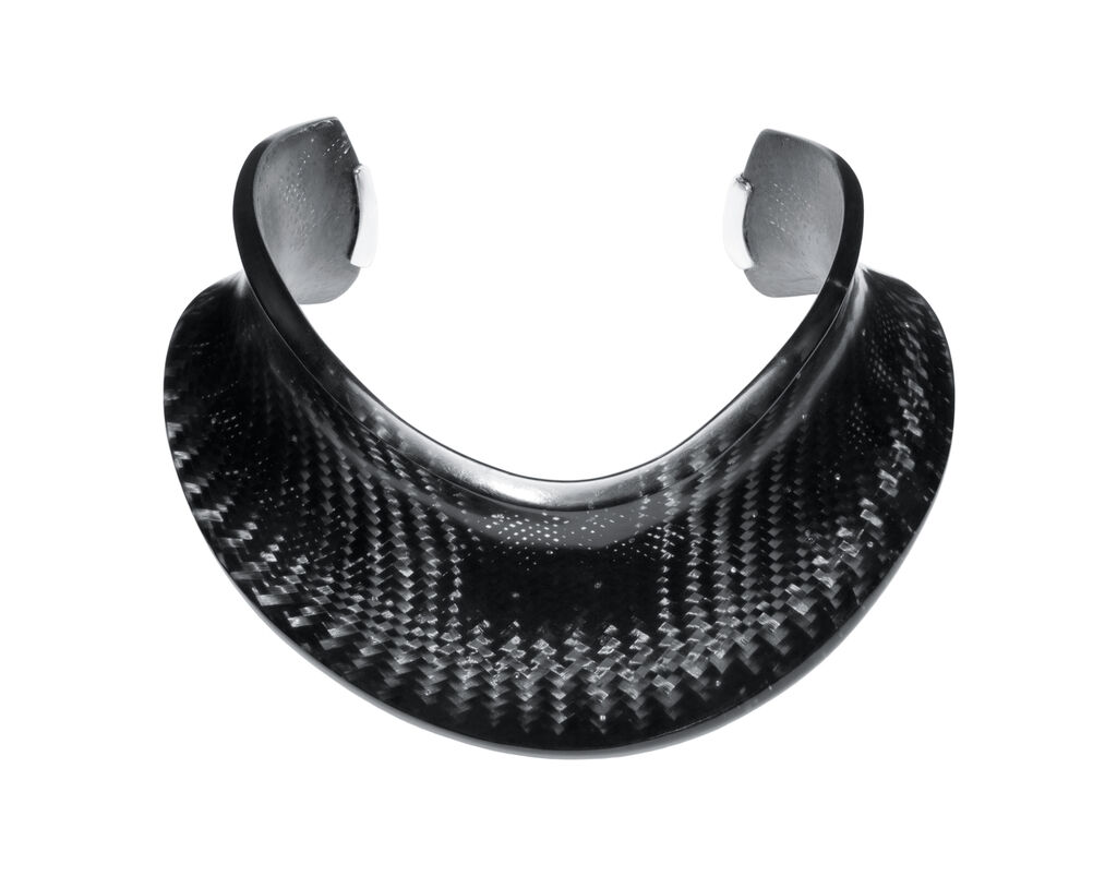 The Element Collar differs from traditional chokers and necklaces because it makes use of a predominantly industrial material such as carbon, turning it into a piece of jewellery that is as lightweight as it is elegant. The interplay between dark and light elements over the curved surface attracts attention and underlines the aesthetic value of the carbon. Due to the ergonomic shape of the concave planes, the Element Collar is comfortable to wear.
