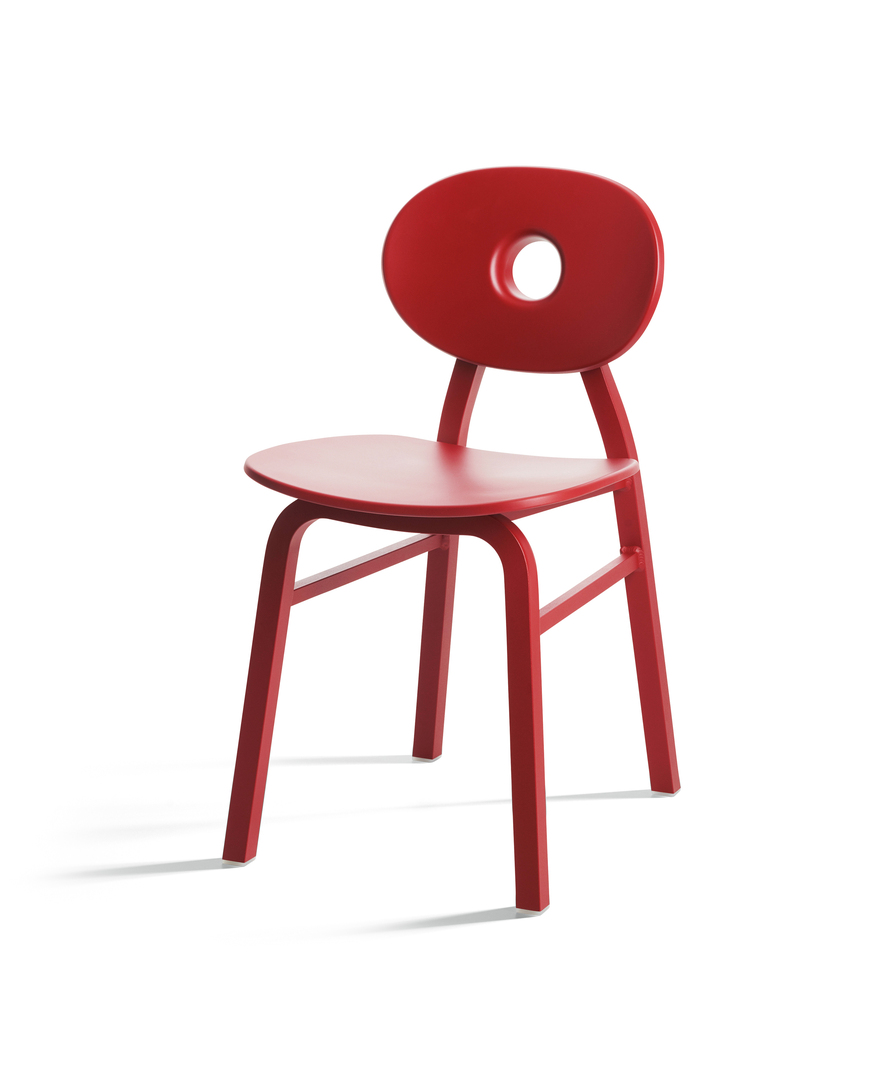 The Elipse chair stands out for its use of contrasting shapes. The square tubular aluminium alloy structure contrasts with the gentle curves of the seat and the backrest made from a technopolymer based on polypropylene. A characteristic design element of the chair is a circular opening in the backrest which also makes this piece of furniture easy to lift. The chair comes in the colours black, white, anthracite and amaranth.
