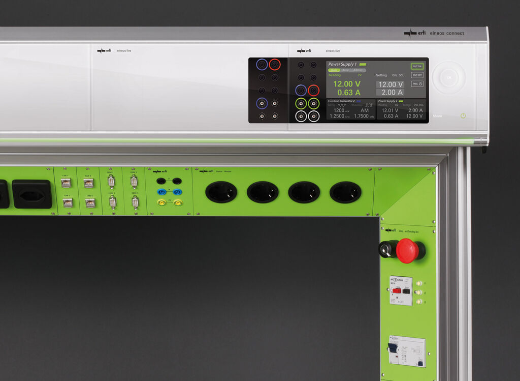 elneos consists of the elneos five device system and the elneos connect workstation system. The 7” multi-touch display of the former is operated via gestures. The connection sockets are embedded flush with the large glass surface and therefore well protected. The intelligent connection panel indicates the current operational status, with the ring lighting up in different colours according to activated function. The sophisticated profile system and the elneos connect connector enable the integration and uninterrupted routing of cables and the regulation of working height using a stable hydraulic height adjuster. It also interconnects to form a bridge across the tables. The workplace lighting and the indicator light use modern RGB LED technology and sensors.