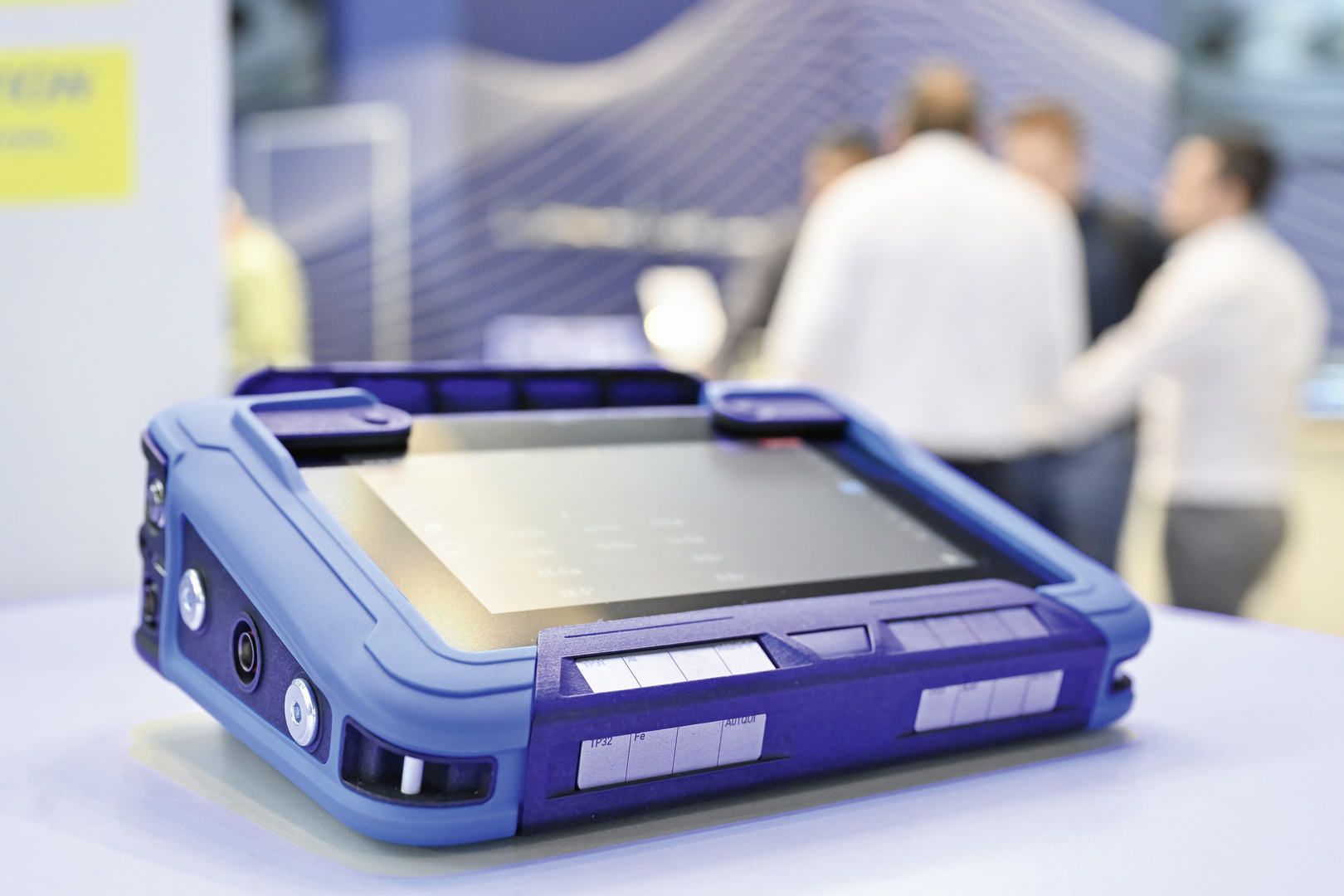 The ELOTEST M6 digital one-hand eddy current tester is characterised by its high signal quality and has an integrated C-scan function for array probes and rotor applications. Using harmonic analysis, metallic materials can be tested for structural changes, hardness and strength. The 7" multi-touch display can be operated with gloves, and two interchangeable adapters also allow the use of third-party probes. The device weighs just 1.2 kg and complies with the IP67 industry standard.