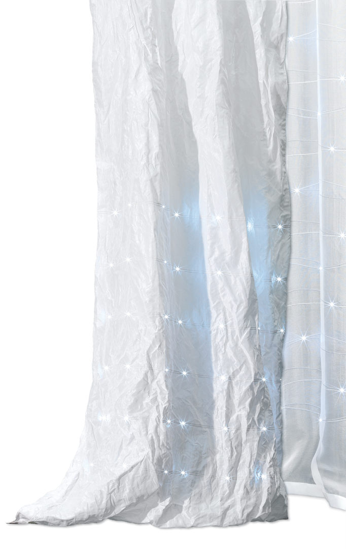 A high degree of innovation is characteristic of the luminous textile eLumino: LED elements, integrated in the curtain, allow for an expressive decoration.