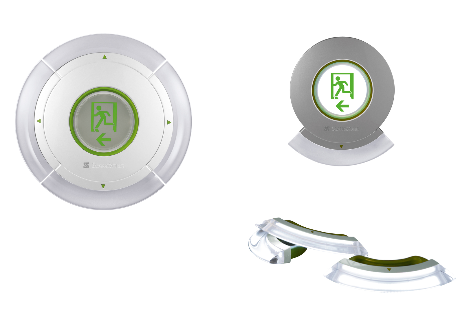 The Emergency Light is a combination of an exit sign and four portable lights. Installed in public hallways or entrances of apartments, it functions as an ordinary exit sign. In the case of a sudden blackout, the edge can be pull out and it becomes four portable lights for illuminating the escape route. Each light is equipped with a powerful battery and a flash light that lasts for several hours, providing enough time to escape safely from the building.