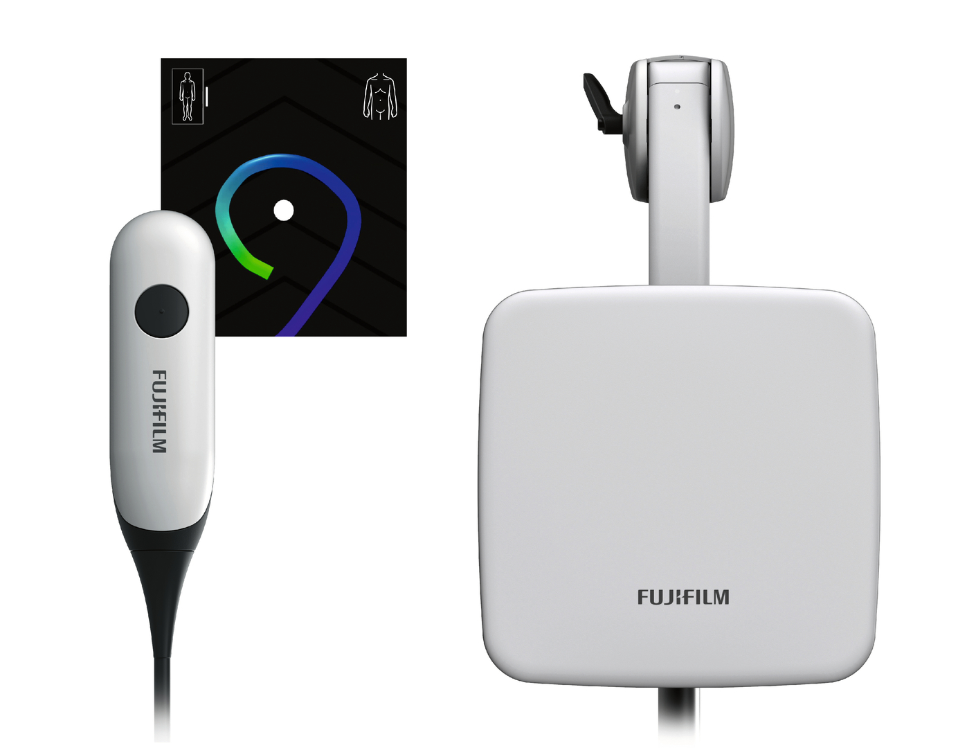 This visualisation system enables reliable and accurate examination of the colon. The transceiver exchanges electromagnetic signals with the endoscope and the hand marker. The information provided by the measured signals is then transferred to a graphic rendering which indicates the exact position of the endoscope in the patient. It is designed with gently rounded curves and generously sized surfaces, and the contrasting black-and-white colour scheme gives it a sober, practical look. The simplicity of the components ensures an understated appearance, allowing it to retreat discreetly into the background during the examination.