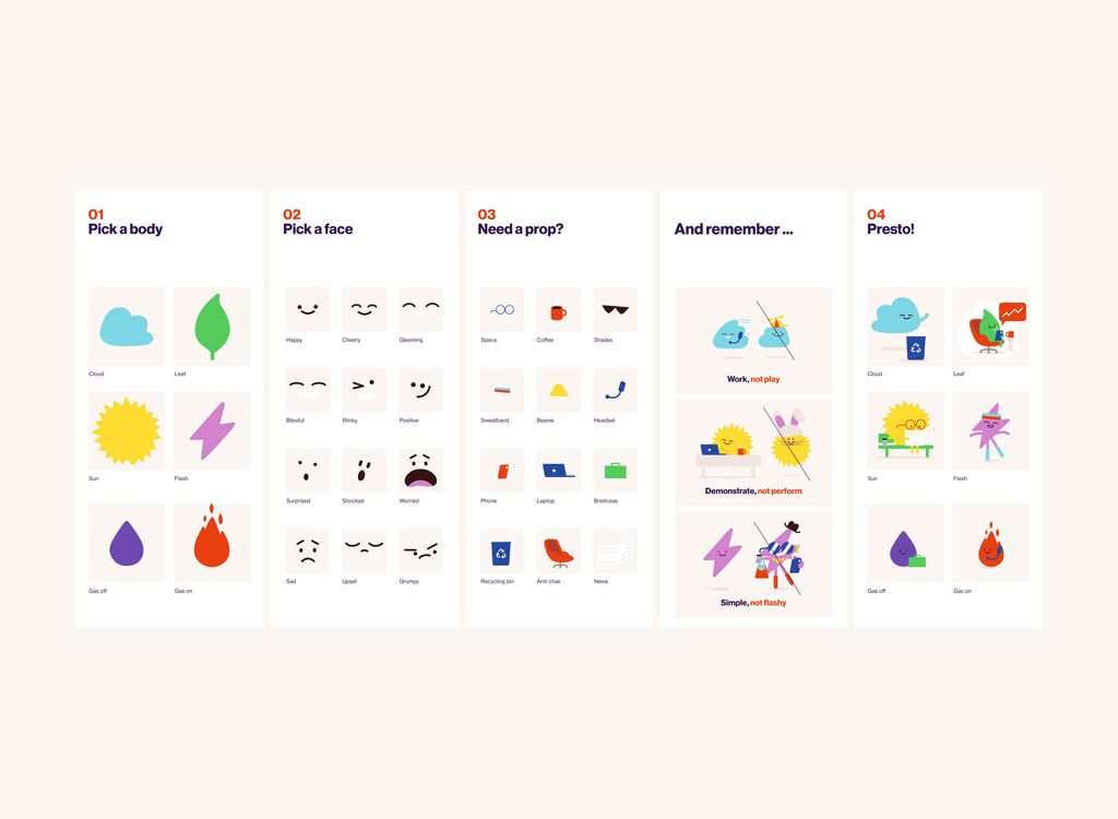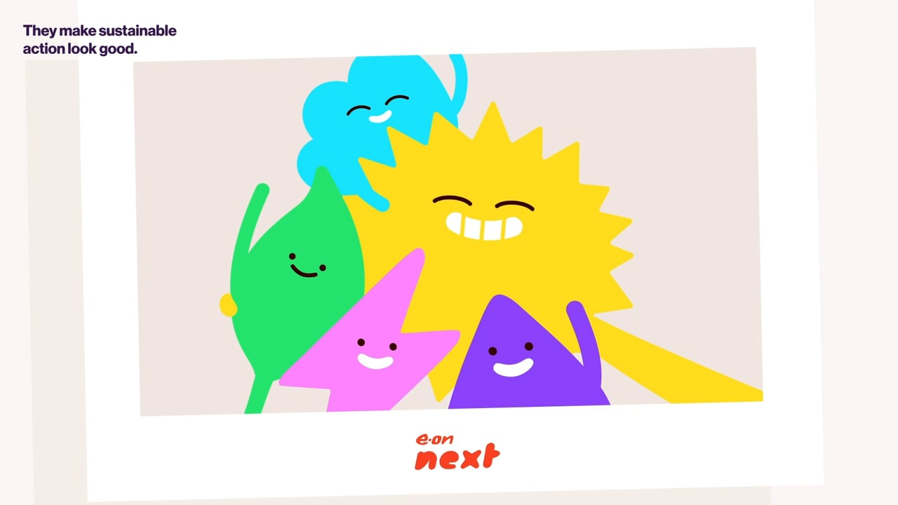 E.ON Next was to be introduced as a new UK energy company with a mission to deliver better, more sustainable electricity and gas to its customers. To attract attention, illustrated characters were developed that represent key areas related to energy, such as a sun for solar, a leaf for sustainability or a cloud for wind. The characters are literally made for storytelling, aiming to make the complex world of sustainable energy understandable and tangible. With the characteristics of being vibrant, fun and positive, they have the function of inspiring the target group to pay more attention to the way energy is produced and used.